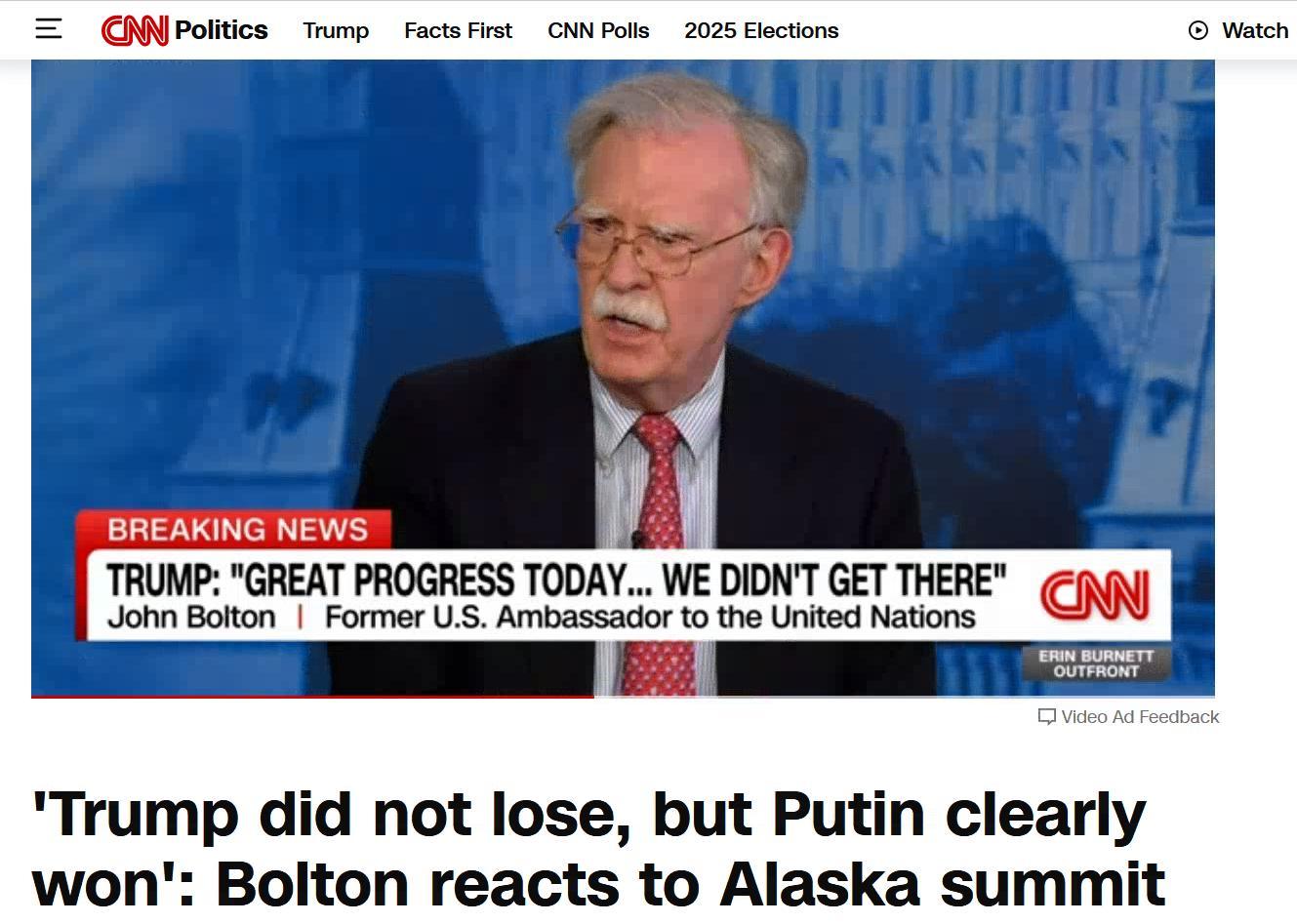 - «Трамп не проиграл, но Путин явно победил»: Болтон отреагировал на саммит на Аляске