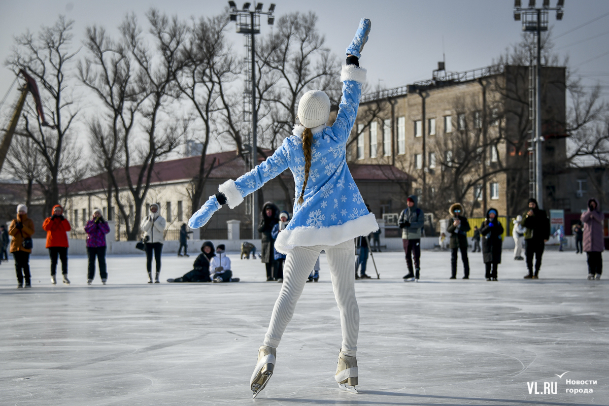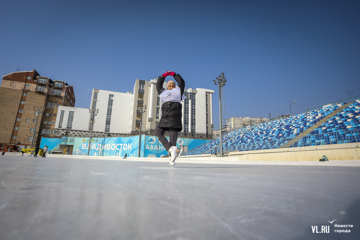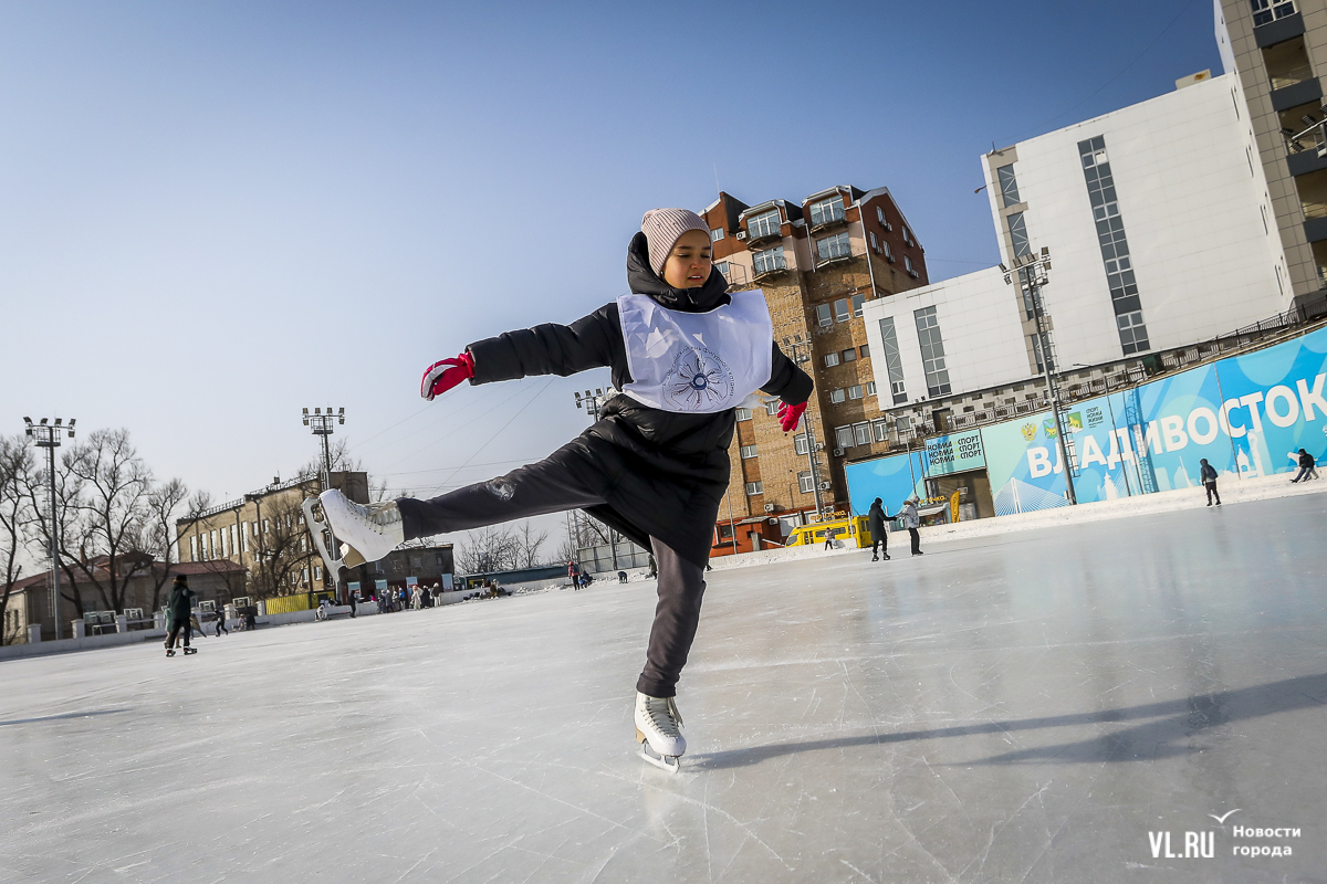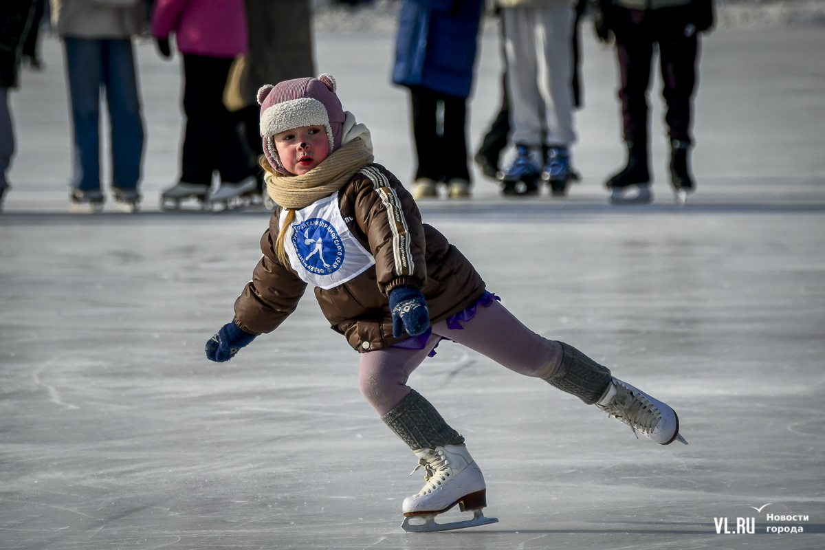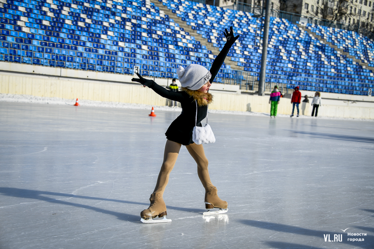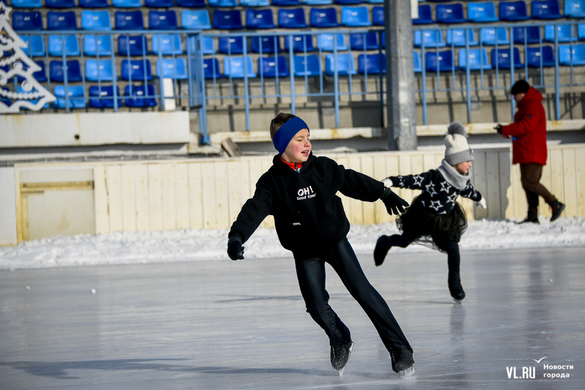 Владивосток в среду, 8 января, присоединился к акции в честь всероссийского Дня фигурного катания. На ледовой площадке стадиона «Авангарде» прошли показательные выступления, игры, состязания, флэшмоб и мастер-классы, на которых детей и взрослых учили основным элементам ледовых пируэтов. Мороз и ветер подсократили явку, но, как говорят организаторы, кто хотел – тот добрался. Праздник продолжается, а прокат работает до 19 часов.