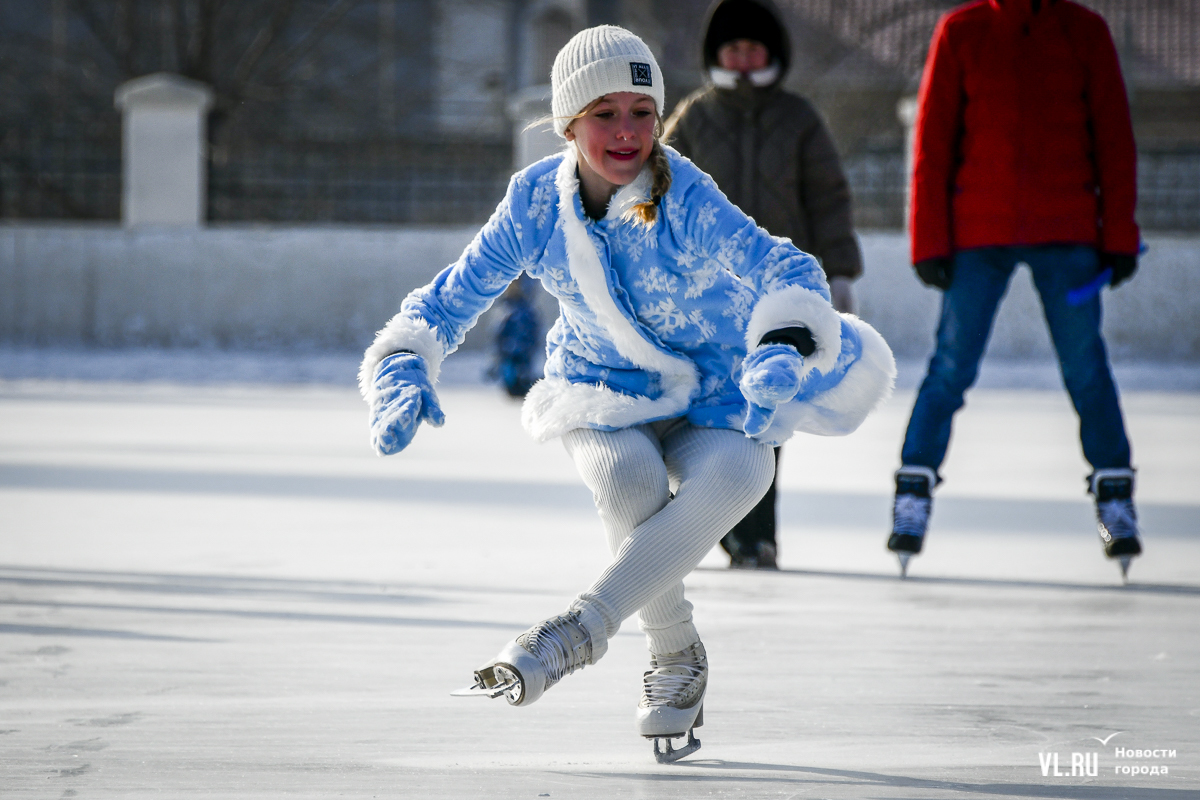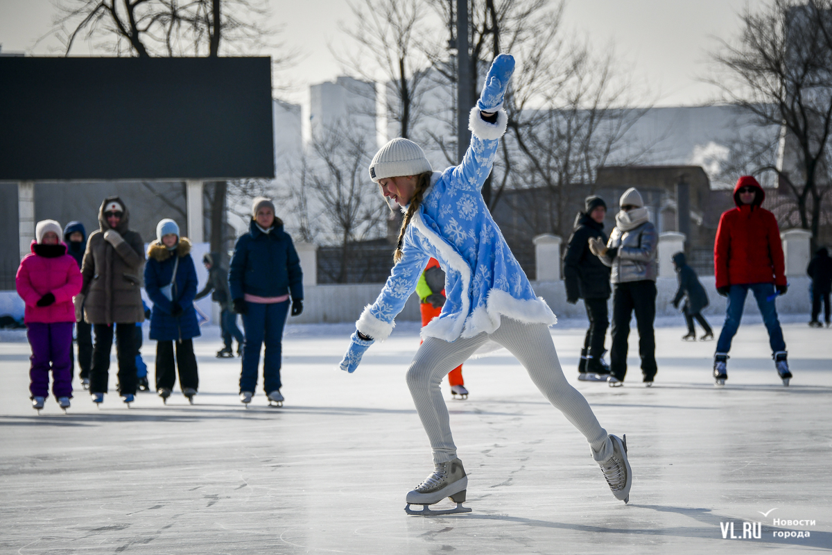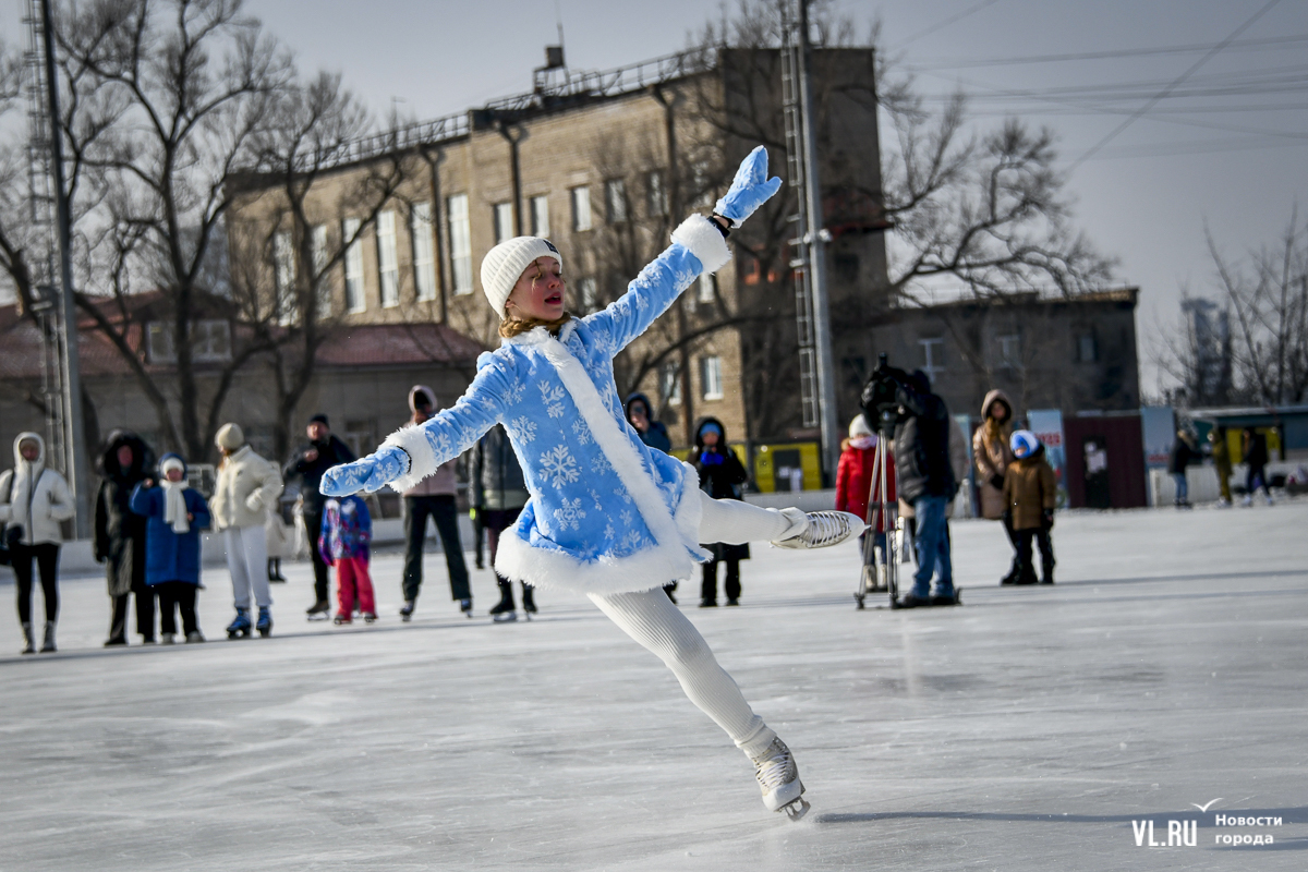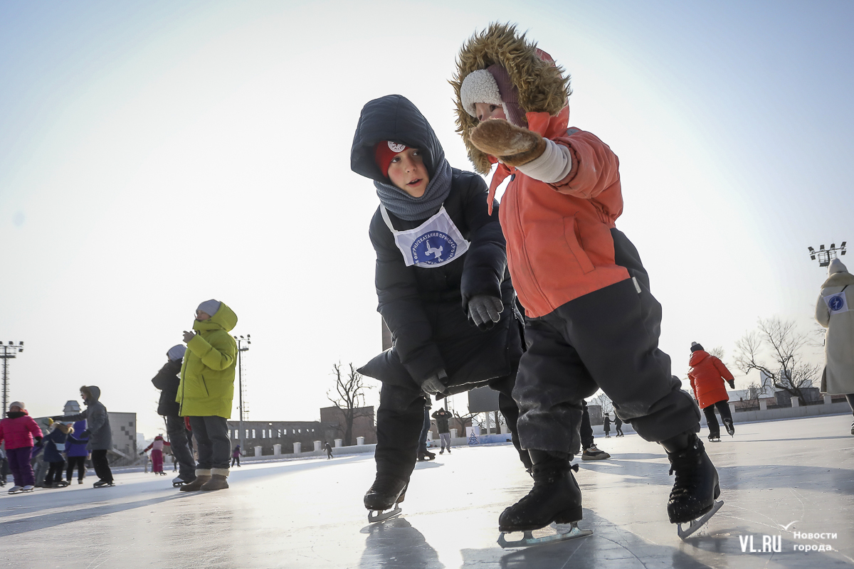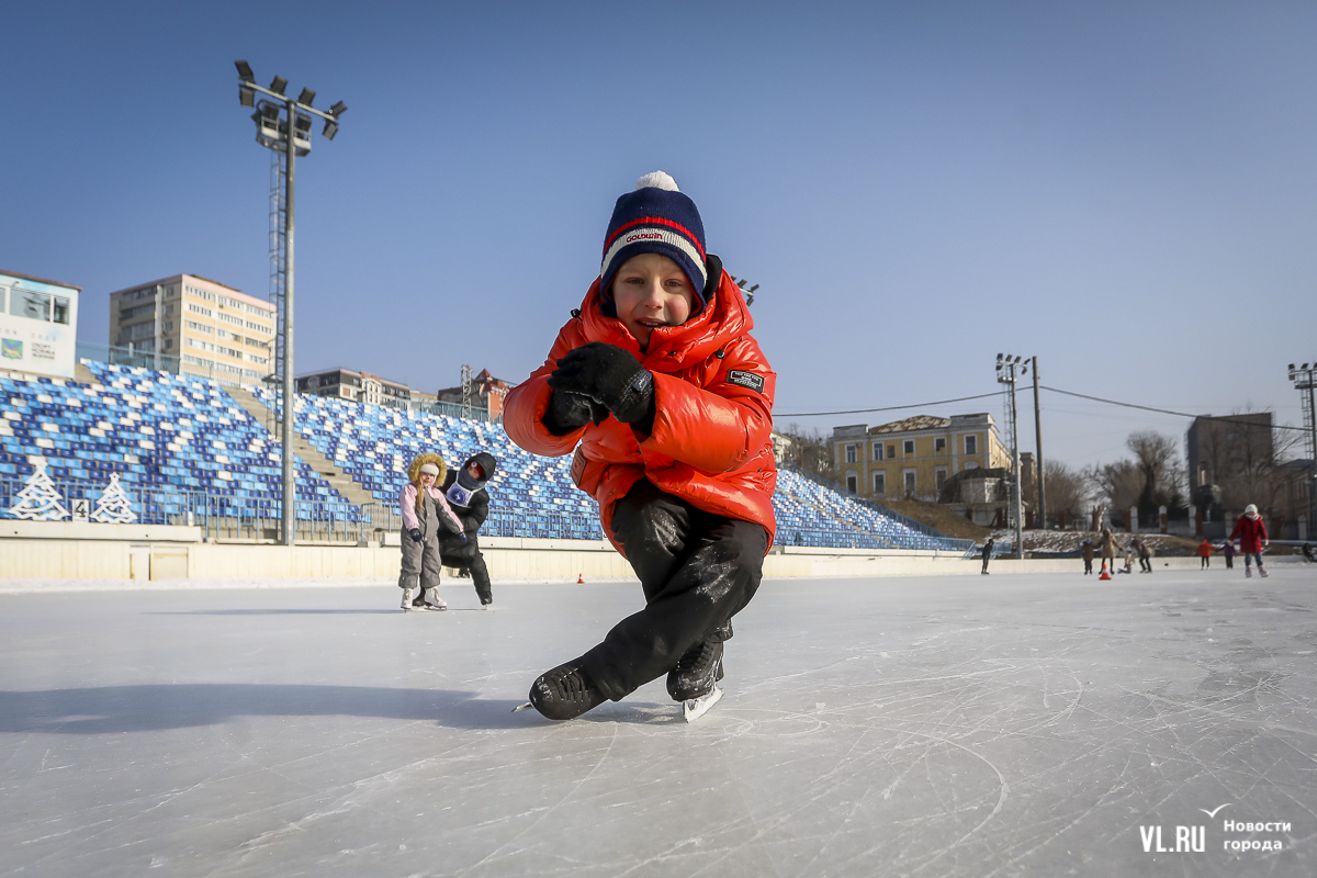 Владивосток в среду, 8 января, присоединился к акции в честь всероссийского Дня фигурного катания. На ледовой площадке стадиона «Авангарде» прошли показательные выступления, игры, состязания, флэшмоб и мастер-классы, на которых детей и взрослых учили основным элементам ледовых пируэтов. Мороз и ветер подсократили явку, но, как говорят организаторы, кто хотел – тот добрался. Праздник продолжается, а прокат работает до 19 часов.