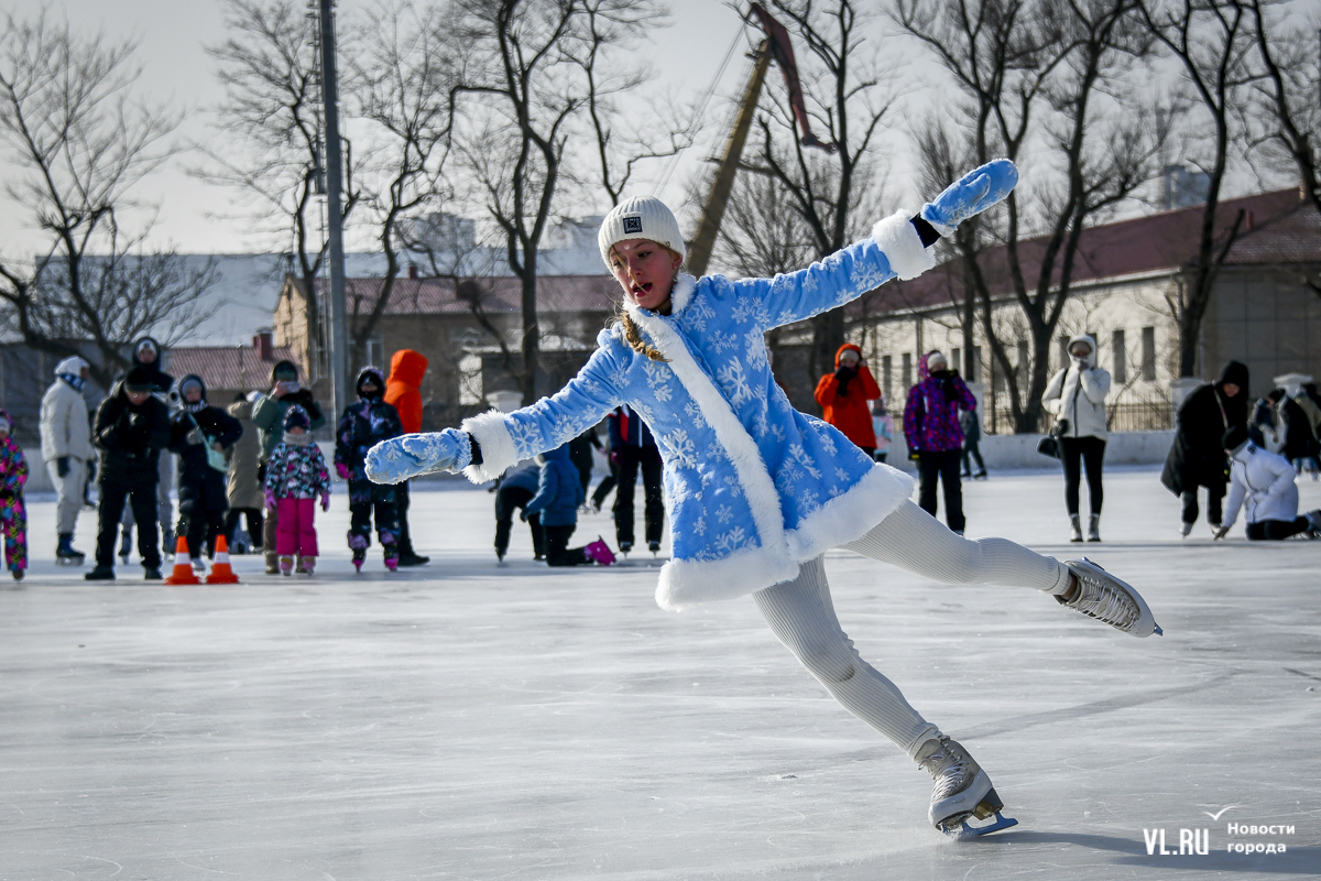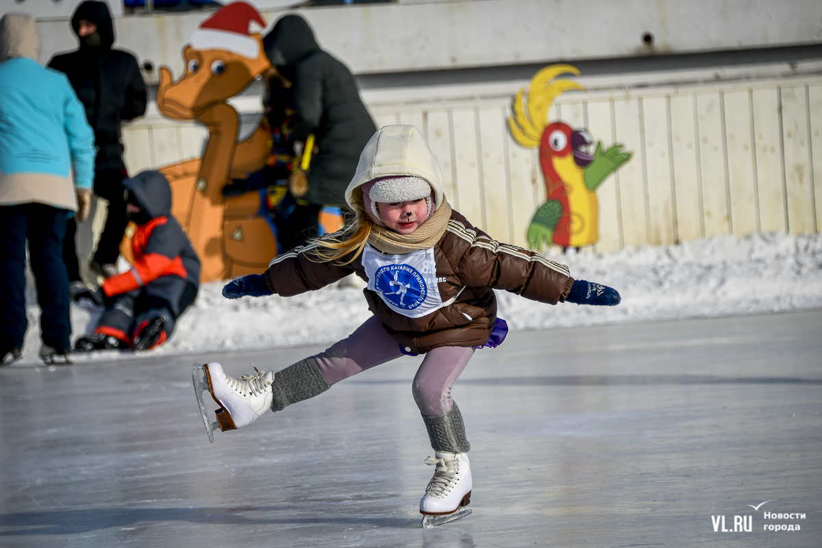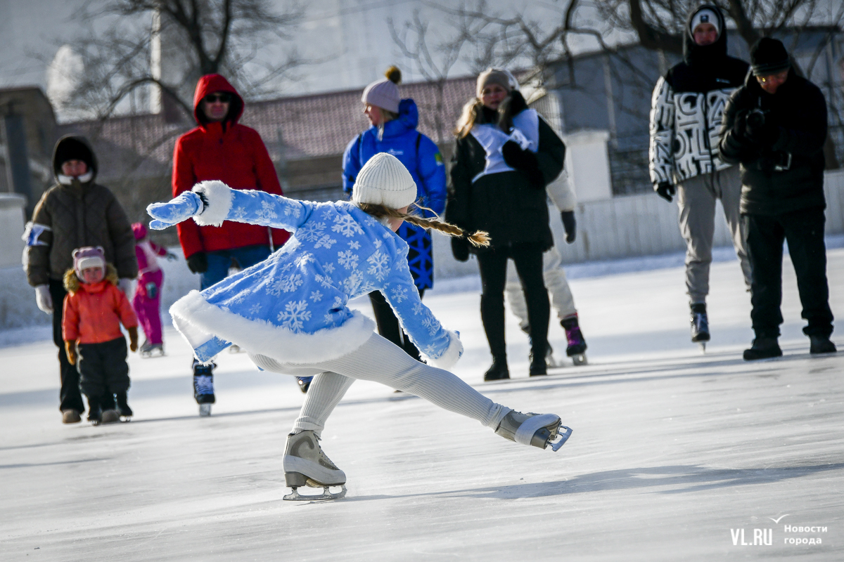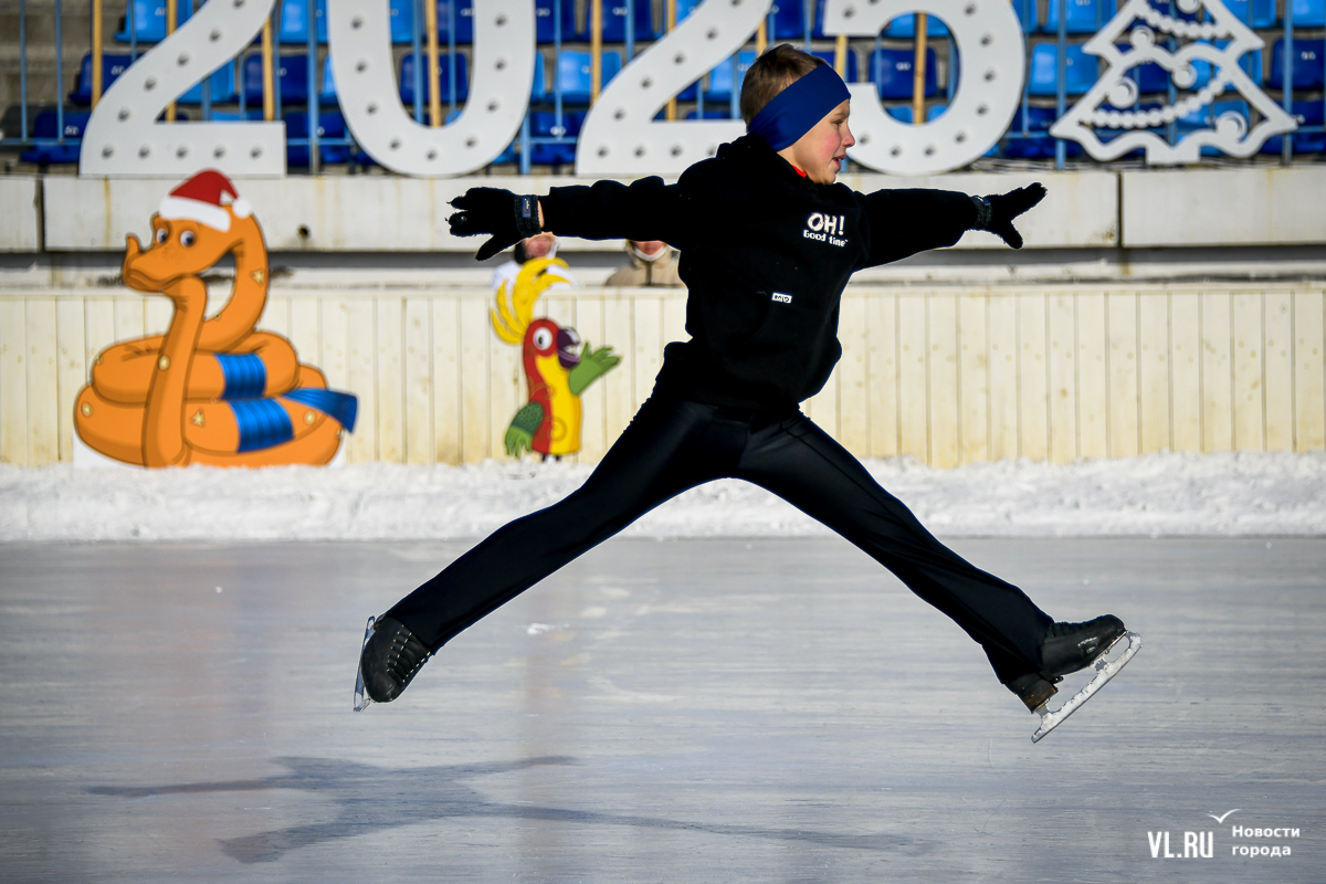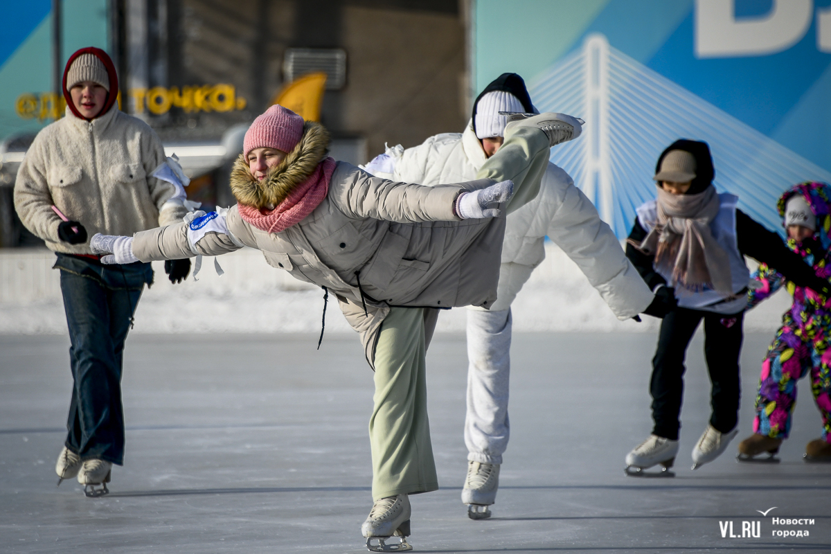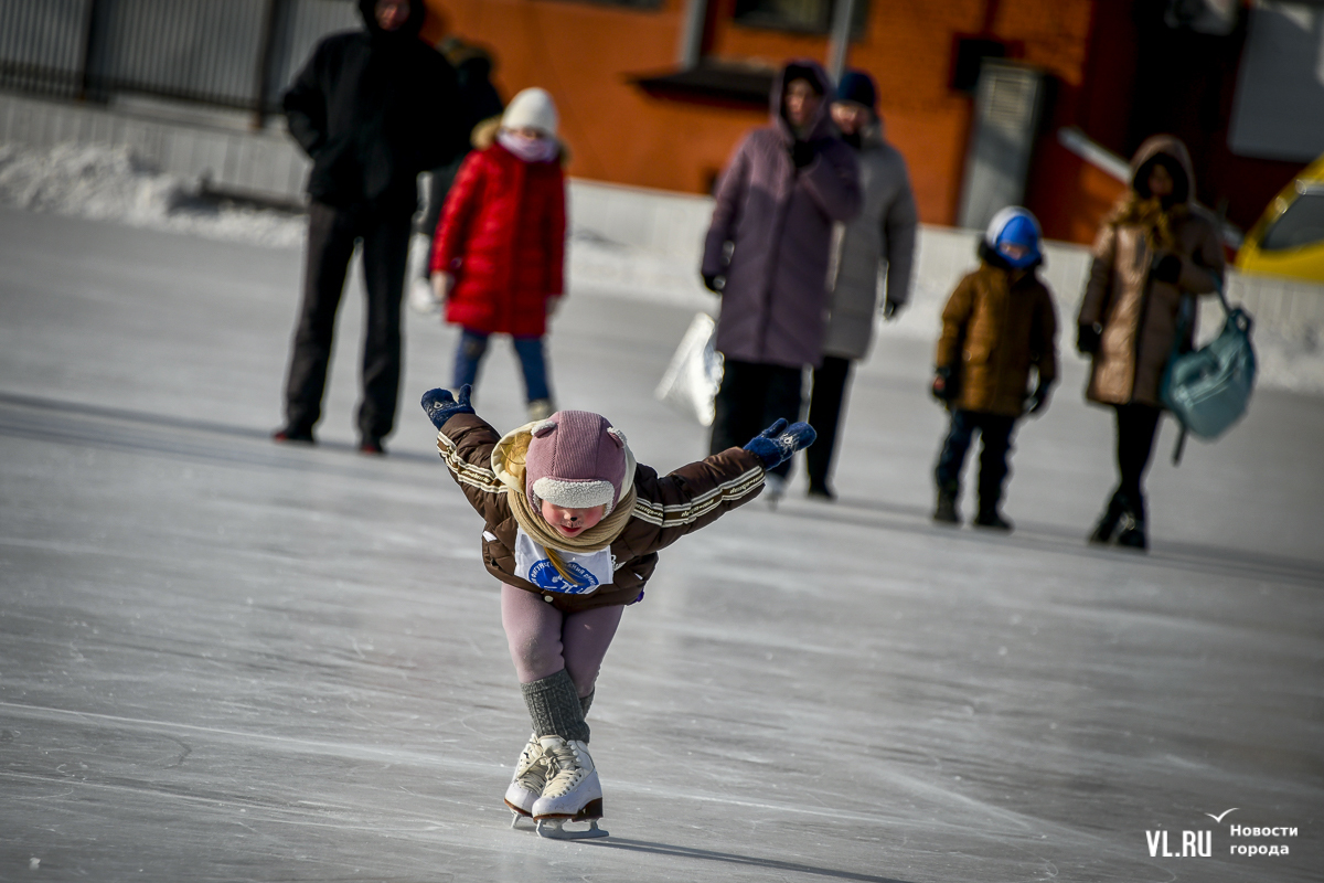 Владивосток в среду, 8 января, присоединился к акции в честь всероссийского Дня фигурного катания. На ледовой площадке стадиона «Авангарде» прошли показательные выступления, игры, состязания, флэшмоб и мастер-классы, на которых детей и взрослых учили основным элементам ледовых пируэтов. Мороз и ветер подсократили явку, но, как говорят организаторы, кто хотел – тот добрался. Праздник продолжается, а прокат работает до 19 часов.