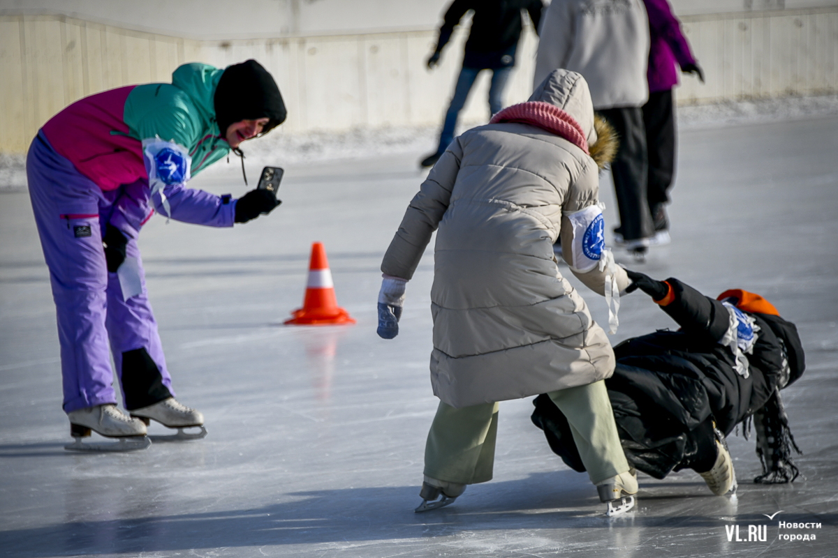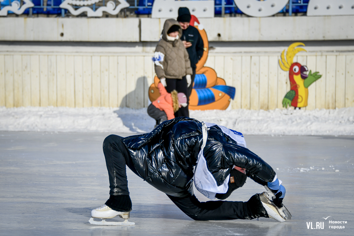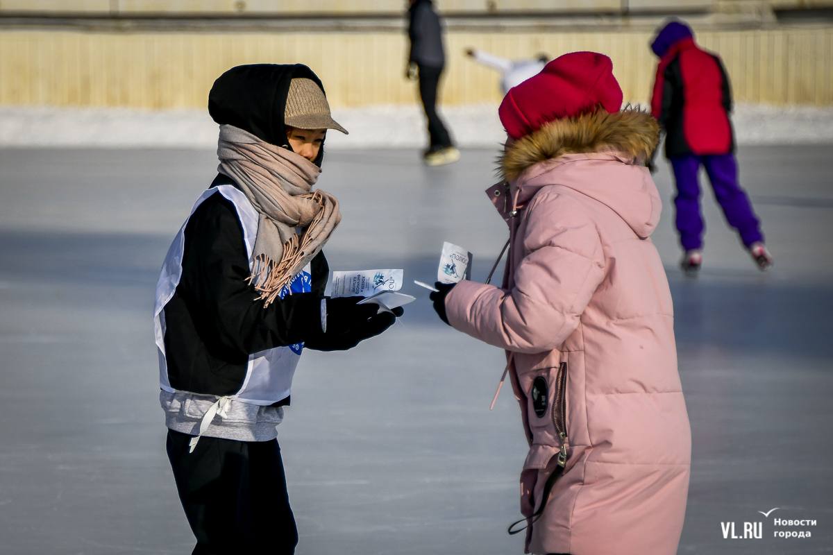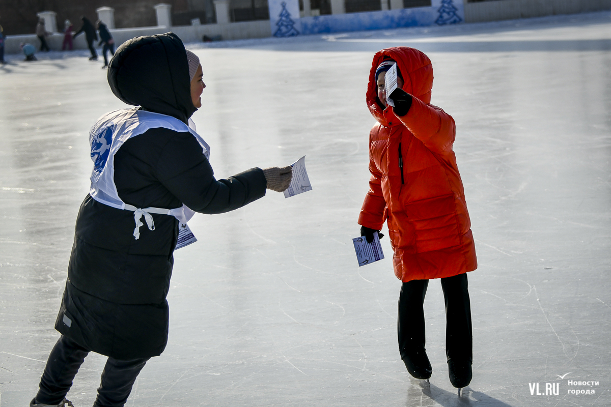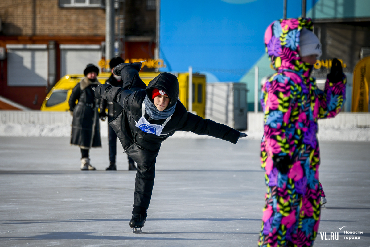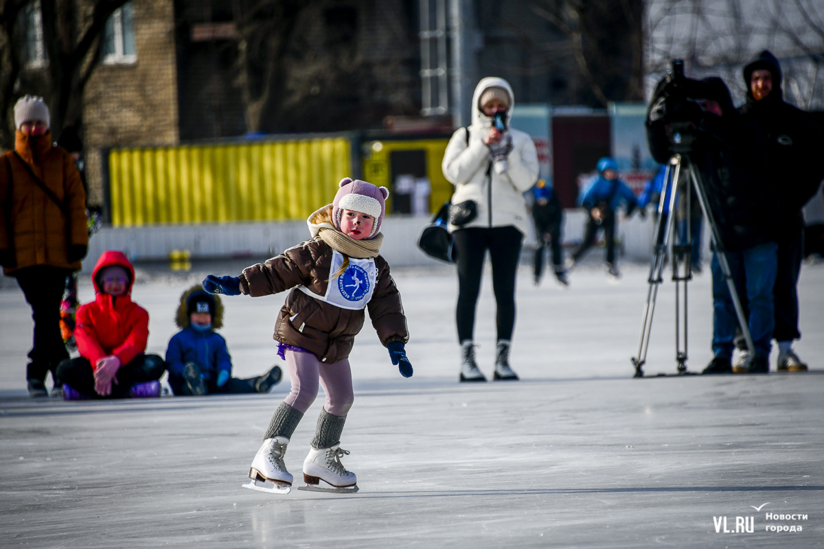 Владивосток в среду, 8 января, присоединился к акции в честь всероссийского Дня фигурного катания. На ледовой площадке стадиона «Авангарде» прошли показательные выступления, игры, состязания, флэшмоб и мастер-классы, на которых детей и взрослых учили основным элементам ледовых пируэтов. Мороз и ветер подсократили явку, но, как говорят организаторы, кто хотел – тот добрался. Праздник продолжается, а прокат работает до 19 часов.