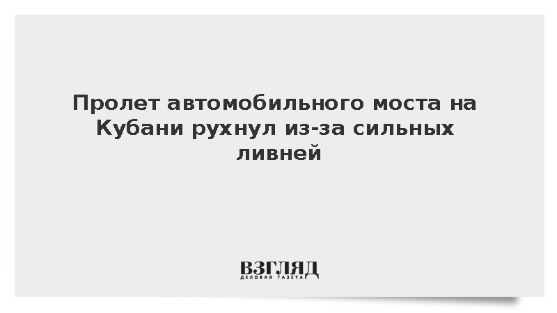 Пролет автомобильного моста обрушился в районе села Фанагорийское в Горячем Ключе из-за сильных ливней, сообщили в оперштабе региона.