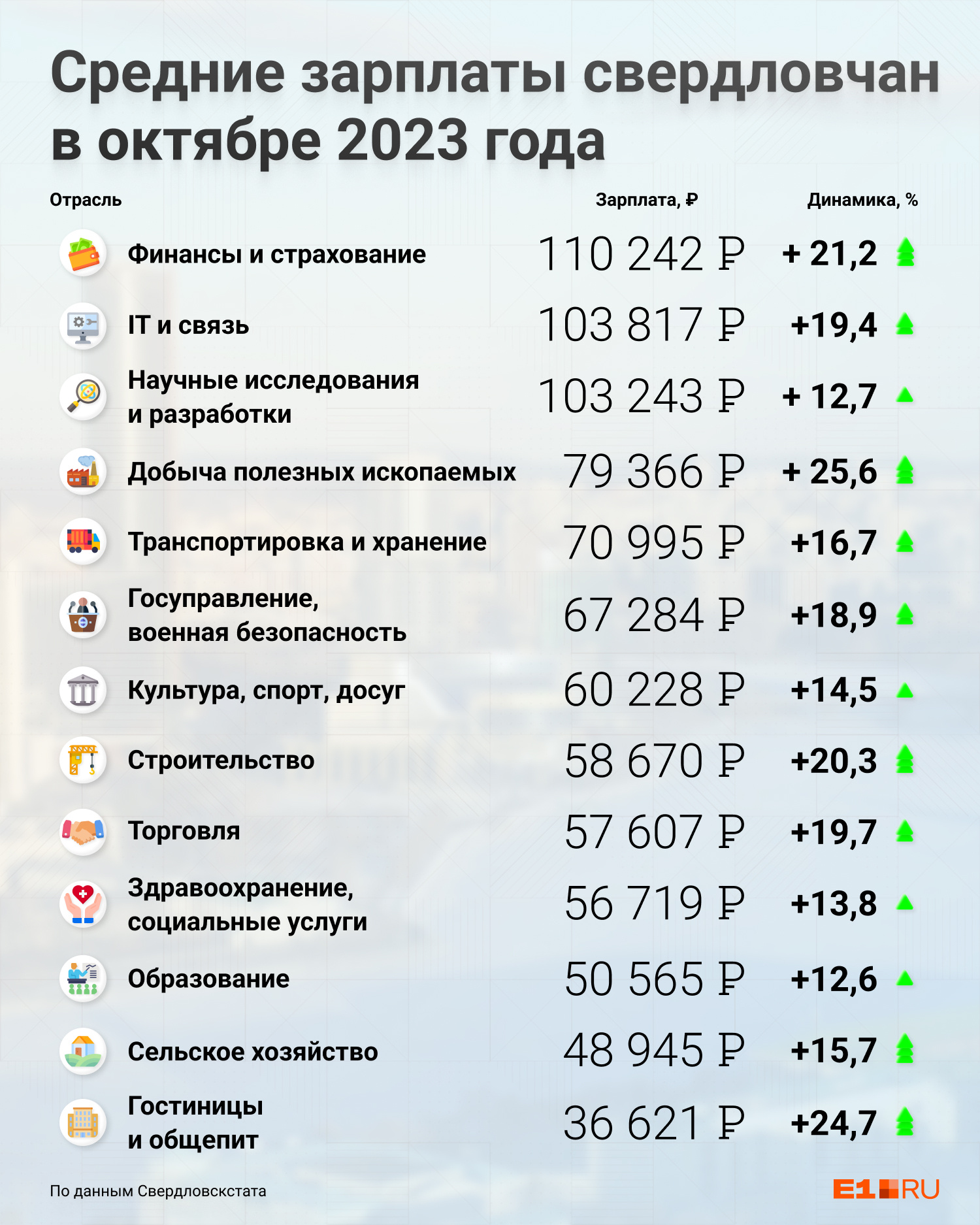 Средняя зарплата в Свердловской области за год выросла на 18,5%. По официальным данным, в октябре она достигла 65 910 рублей, но у некоторых специалистов перевалила за 110 тысяч рублей.