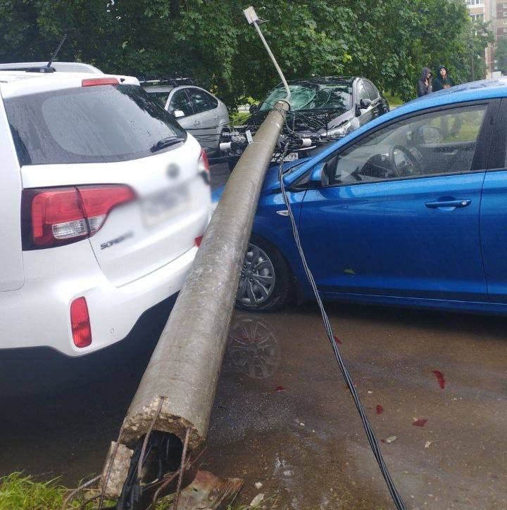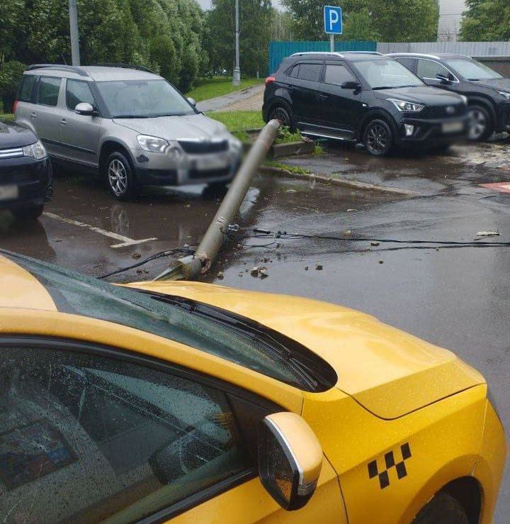 На юге Москвы упал фонарный столб и повредил несколько припаркованных авто. Информации о возможных пострадавших нет.
