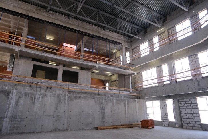 Сейчас строители занимаются внутренними стенами учебного корпуса и досугового центра СУНЦ НГУ, отделывают здесь помещения под индивидуальный тепловой пункт и проводят монтаж его оборудования, занимаются кровлей.