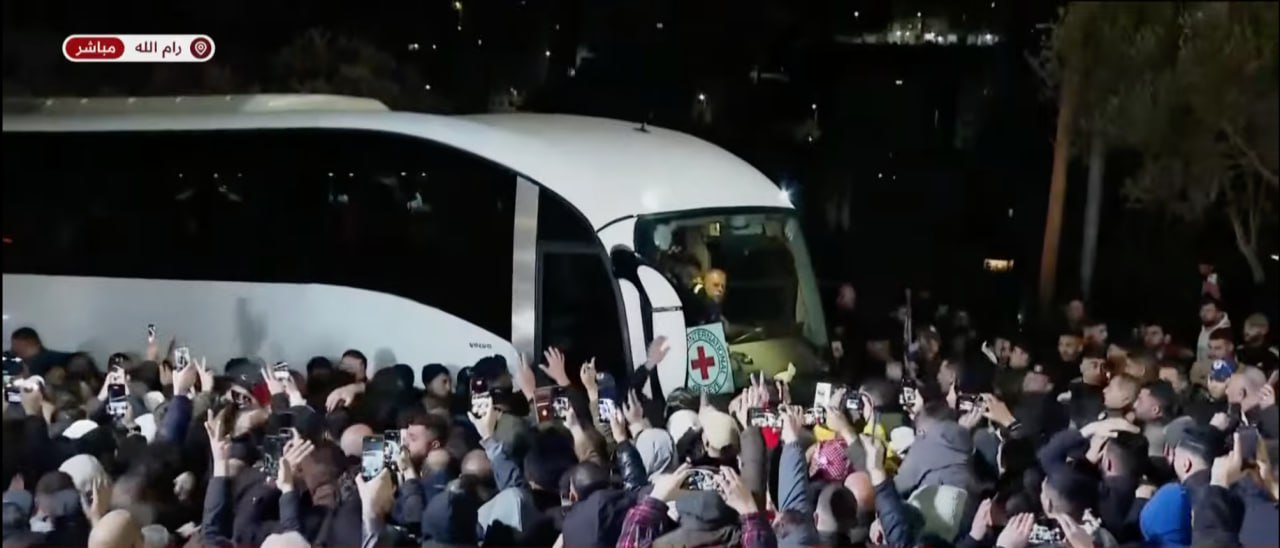 🖥️ Кадры из Рамаллы на Западном берегу реки Иордан, где палестинцы встречают освобожденных из заключения в рамках обмена между ХАМАС и Израилем соотечественников.