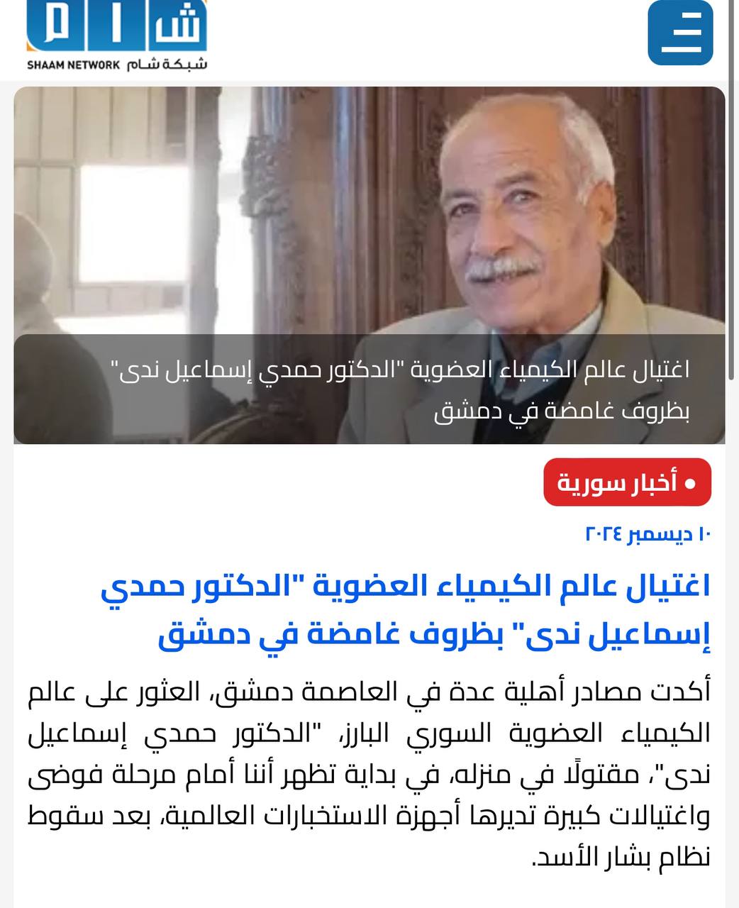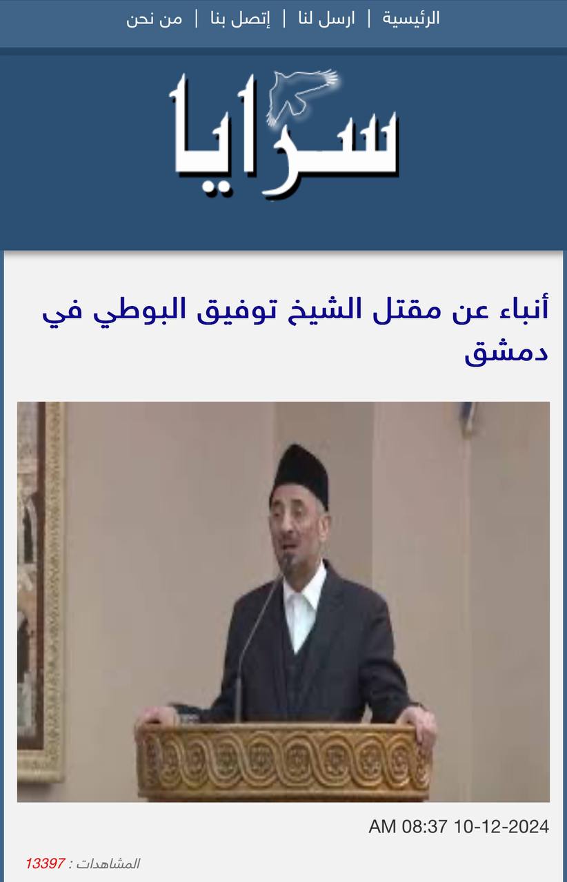 Известный сирийский ученый-химик доктор Хамди Исмаил был найден убитым в своем доме в Дамаске. Также СМИ сообщают об убийстве в сирийской столице шейха Тауфика Аль-Бути - известнейшего ученого-богослова.