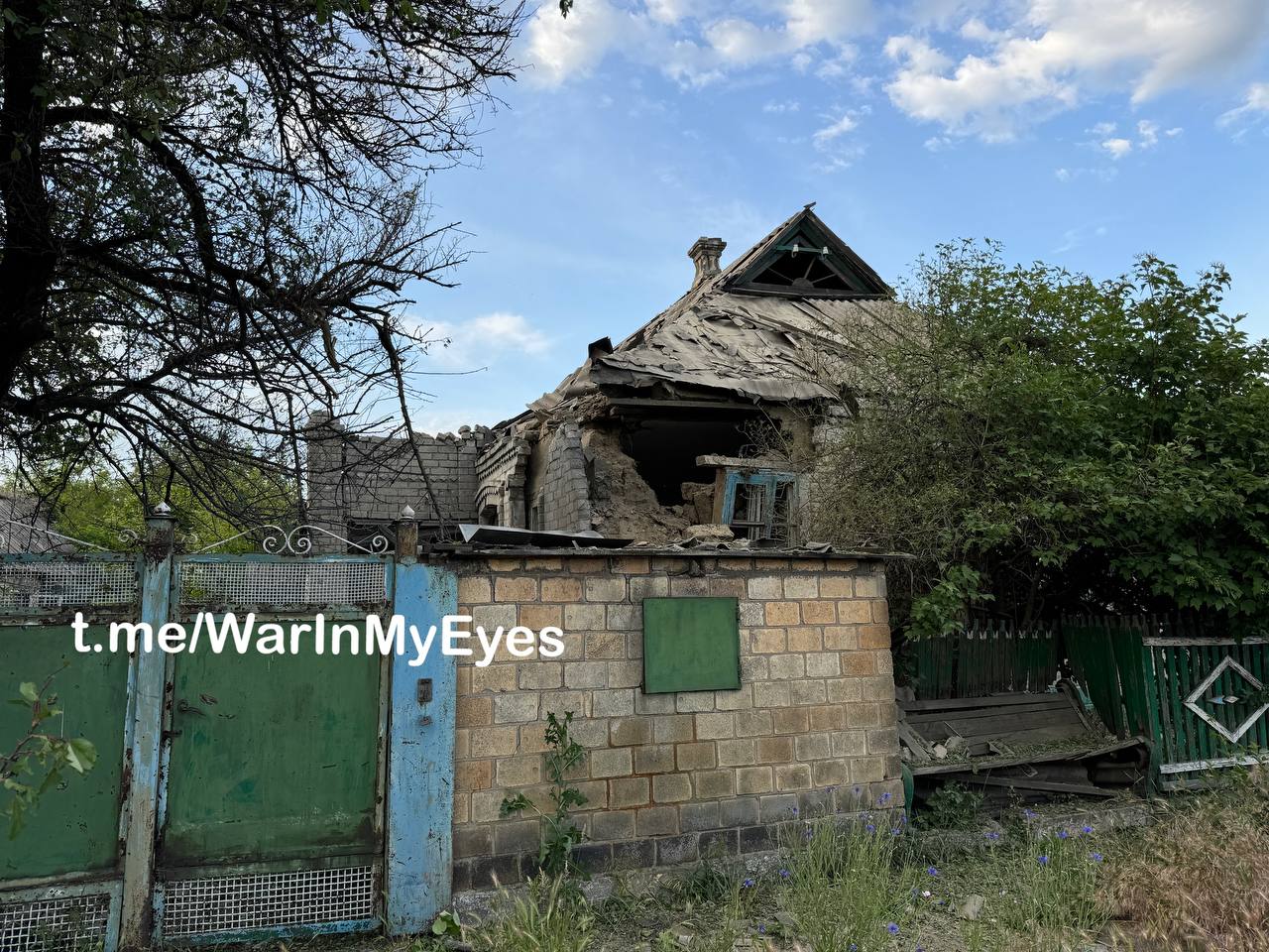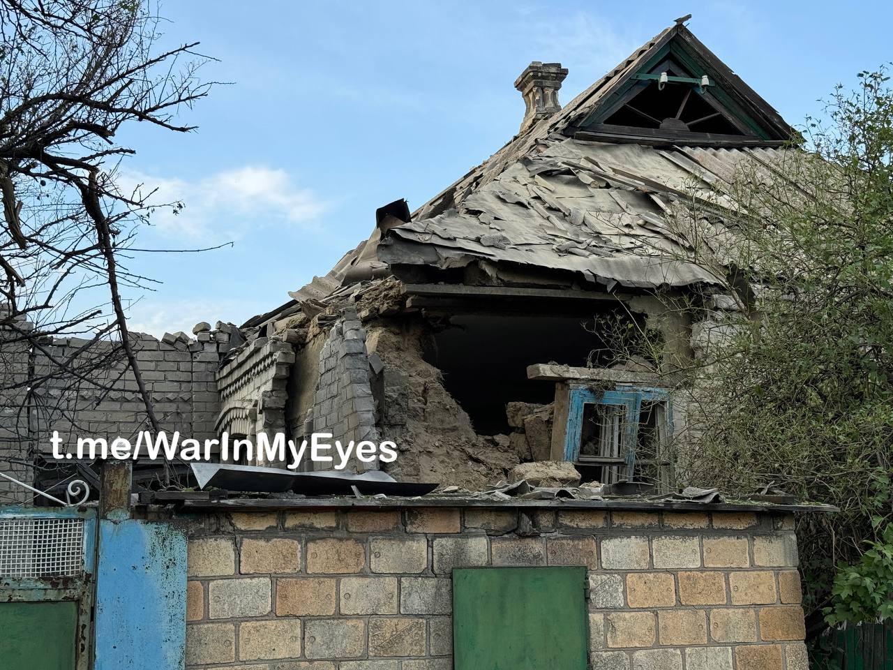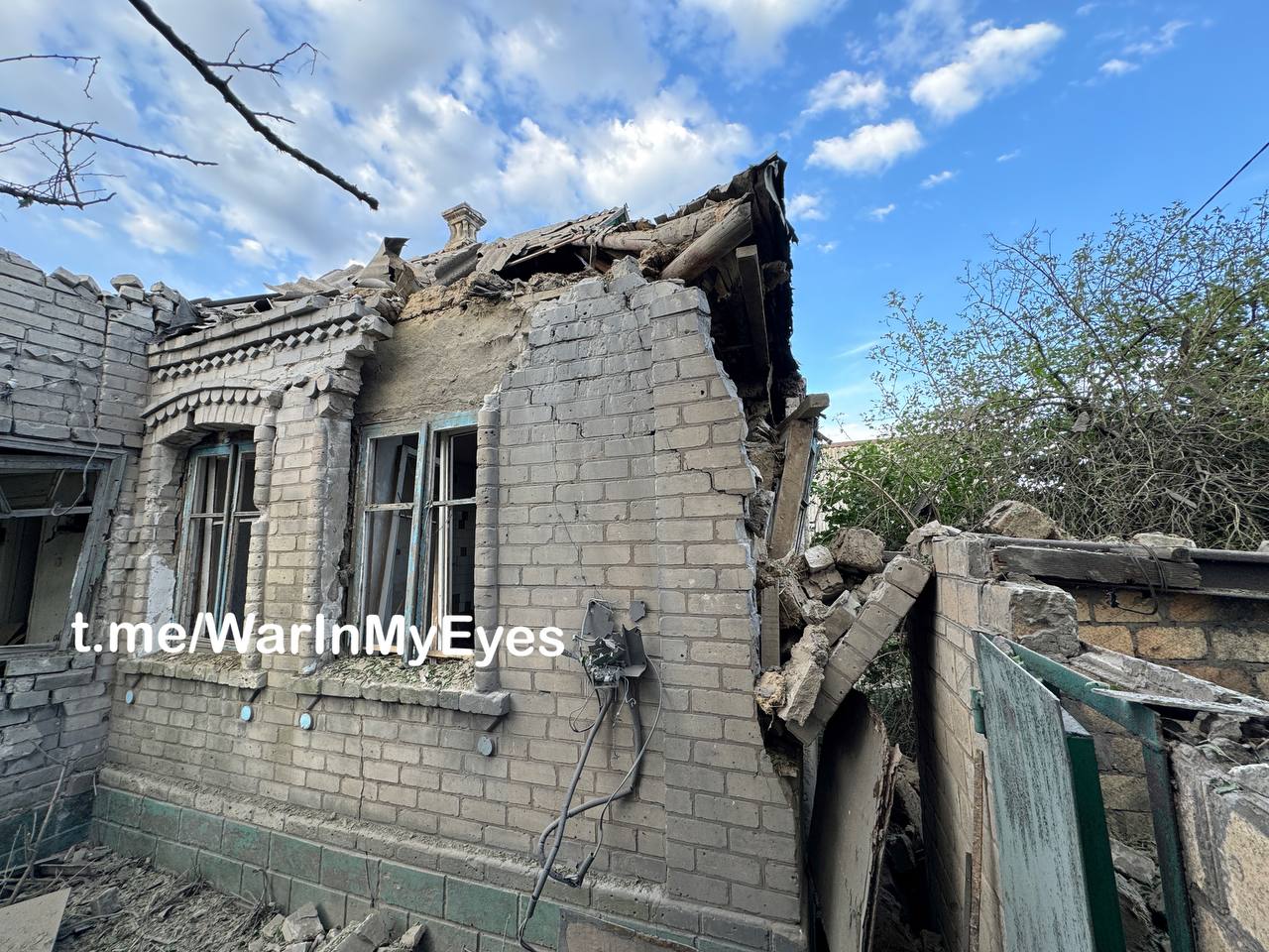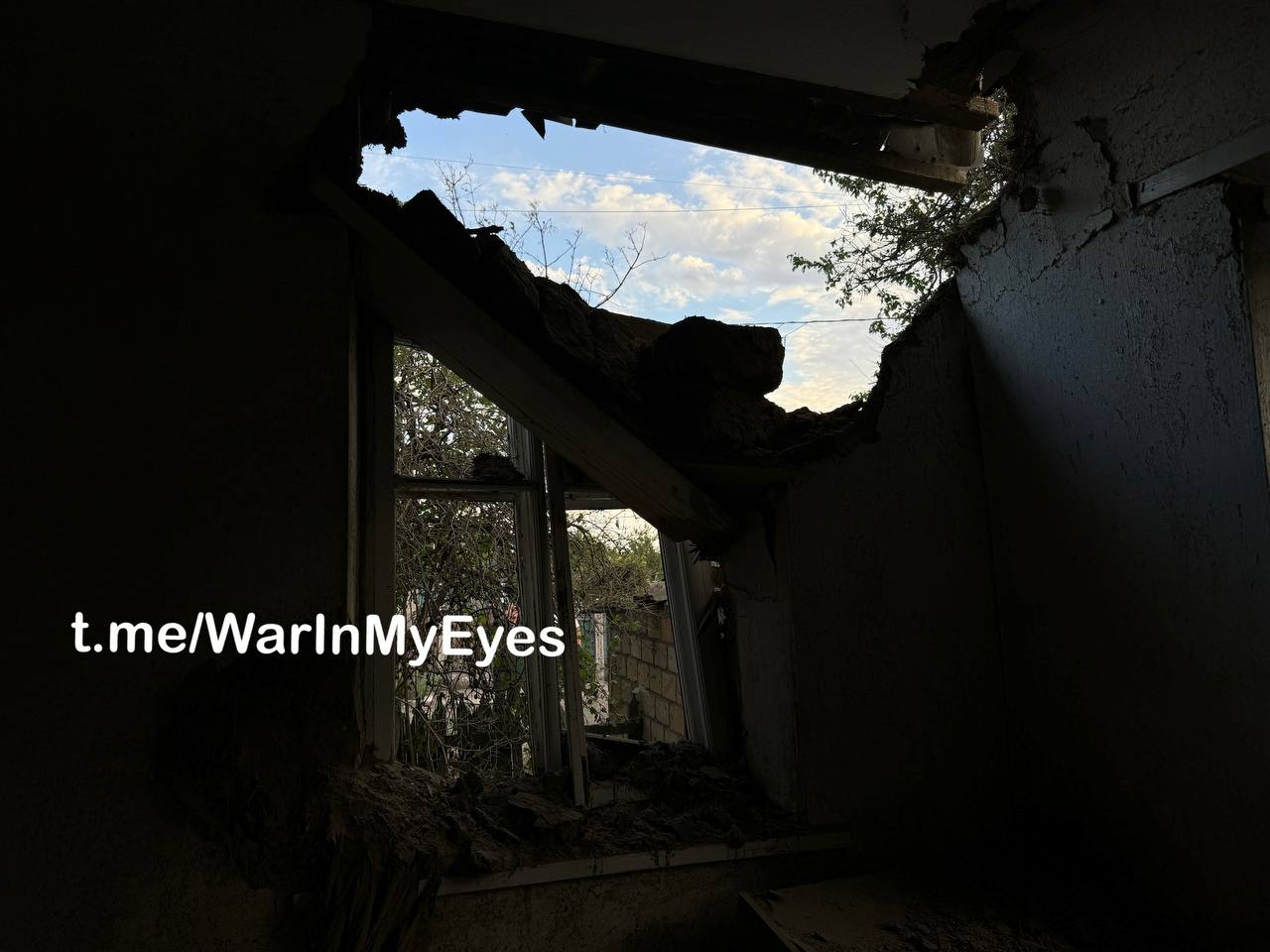 Последствия прилета двух ракет РСЗО «Град» в частный жилой дом в Кировском районе Донецка, поселок Старомихайловка.