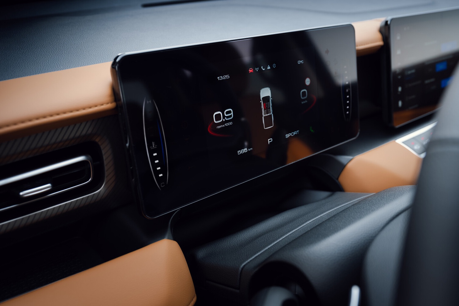На дисплей новой мультимедийной панели диагональю 12,3 дюйма можно вывести не только навигацию, но и наблюдать за работой системы кругового обзора. Она незаменима при движении по узким дорогам или парковке во дворе. Помимо прочего, новая развлекательная система поддерживает протоколы подключение к системе Android Auto (ранее был доступен только CarPlay).