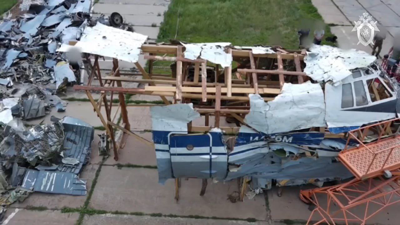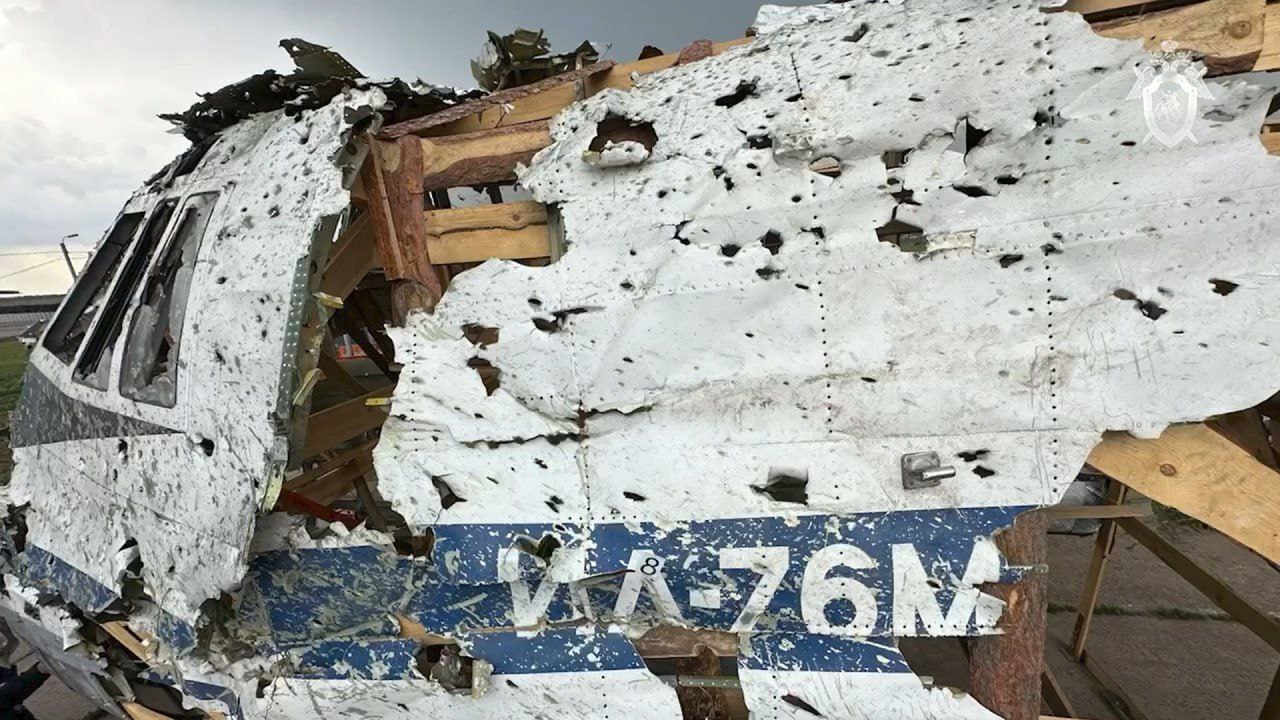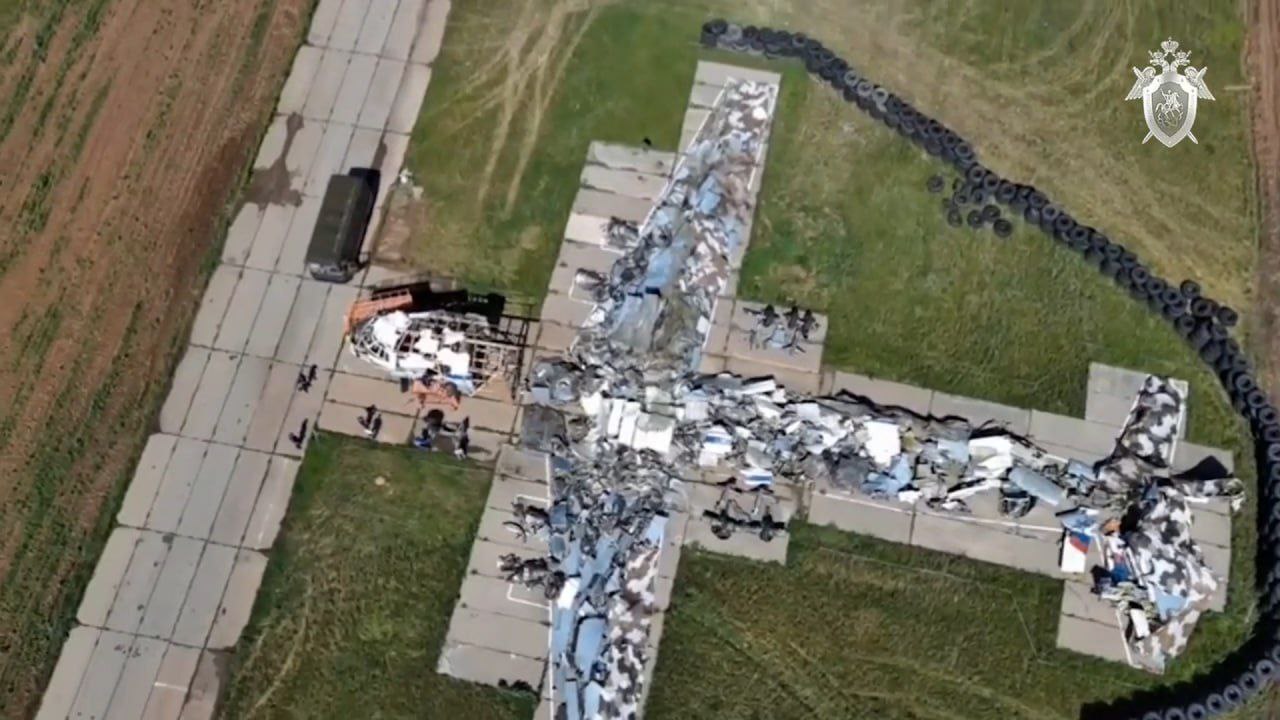 СК публикует кадры с обломками транспортного Ил-76МД, который был сбит в Белгородской области 24 января в момент доставки пленных украинских солдат.