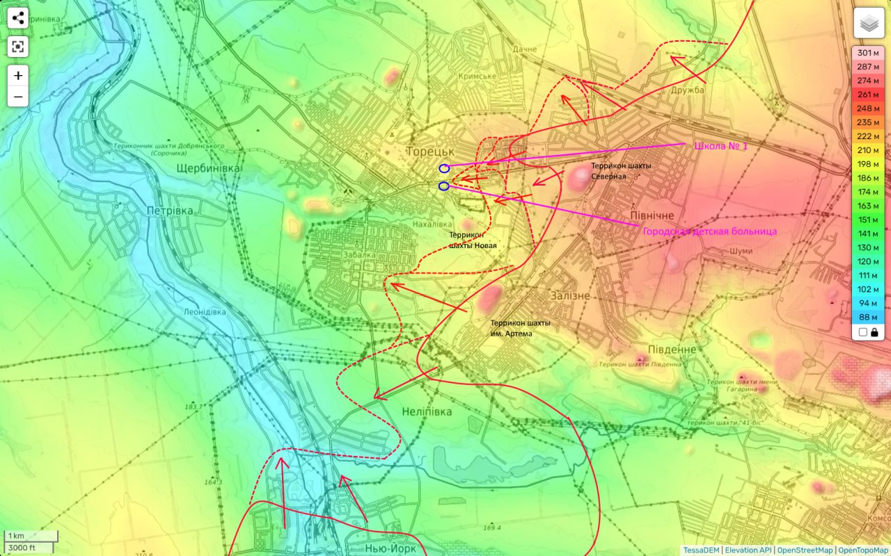 Наши части продолжают прогрызать оборону противника в северо-восточной части Торецка вдоль улицы Центральной. Взято еще несколько зданий и мы постепенно охватываем с севера местную «зону» (ИК №2).
