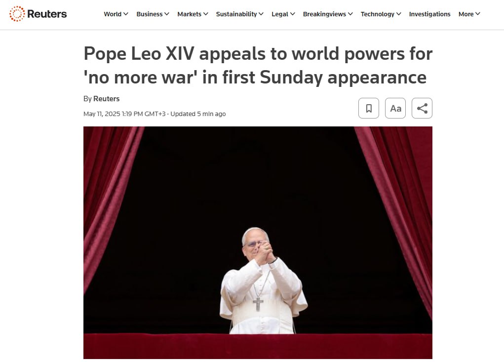 Папа Лев XIV вышел на балкон собора Святого Петра в Ватикане со своей первой проповедью. В ней он призвал к «подлинному и прочному миру» на Украине и прекращению огня и освобождению заложников в Газе, передает Reuters.