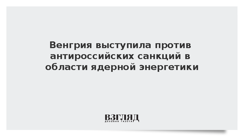 По его словам, Венгрия выступает против любых санкций в отношении ядерных технологий, топлива, строительства или эксплуатации объектов ядерной энергетики, передает ТАСС.