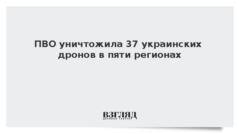 Средства ПВО уничтожили 37 беспилотников самолетного типа с 18:00 до 20:00 мск на территории пяти российских регионов, из них один был сбит над Крымом, сообщило Министерство обороны России.