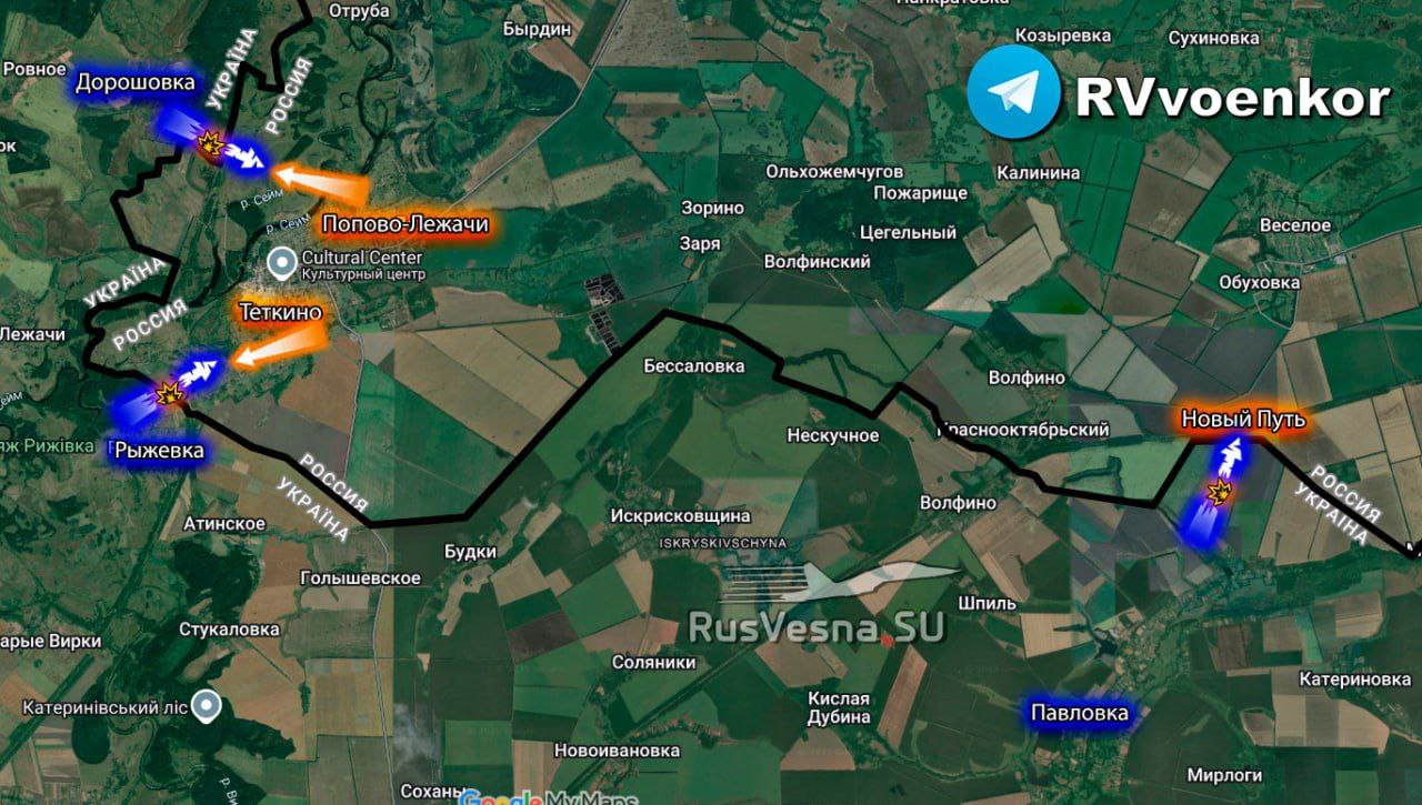 Курск. ВСУ пытаются пробиться в Курскую область на трех участках границы. Есть ещё четвёртый участок, район посёлка Горналь и монастыря рядом, - там тоже продолжаются остаточные бои.