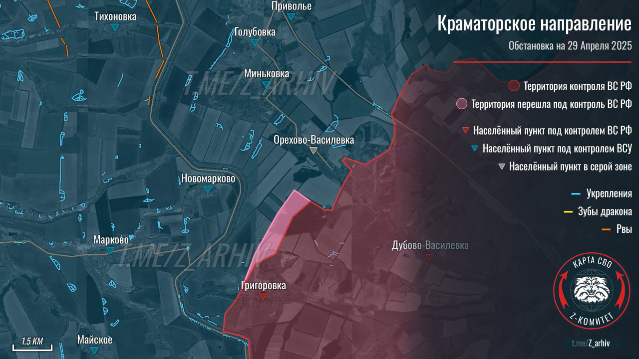 Продвижение подразделений ВС РФ возле Григоровки и Орехово-Василевки.
