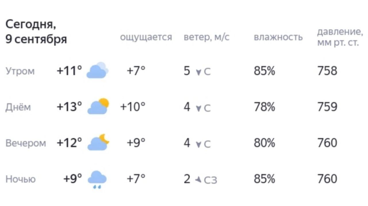 Во вторник, 9 сентября, средняя температура в Югре составит +12…+17 градусов — днем, и +4…+9 градусов — ночью. В южной части в дневное время будет теплеет — +15…+20 градусов. Также прогнозируют дожди и туман. Ветер — северный, 4-9 м/с. Возможны порывы ветра до 14 м/с.
