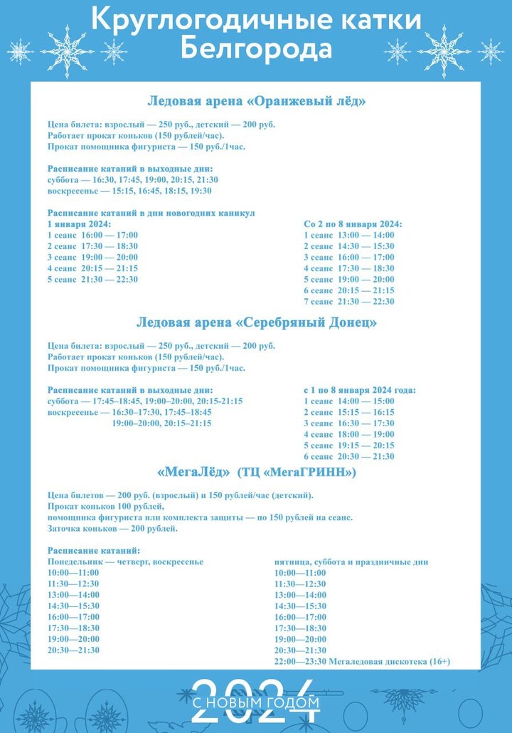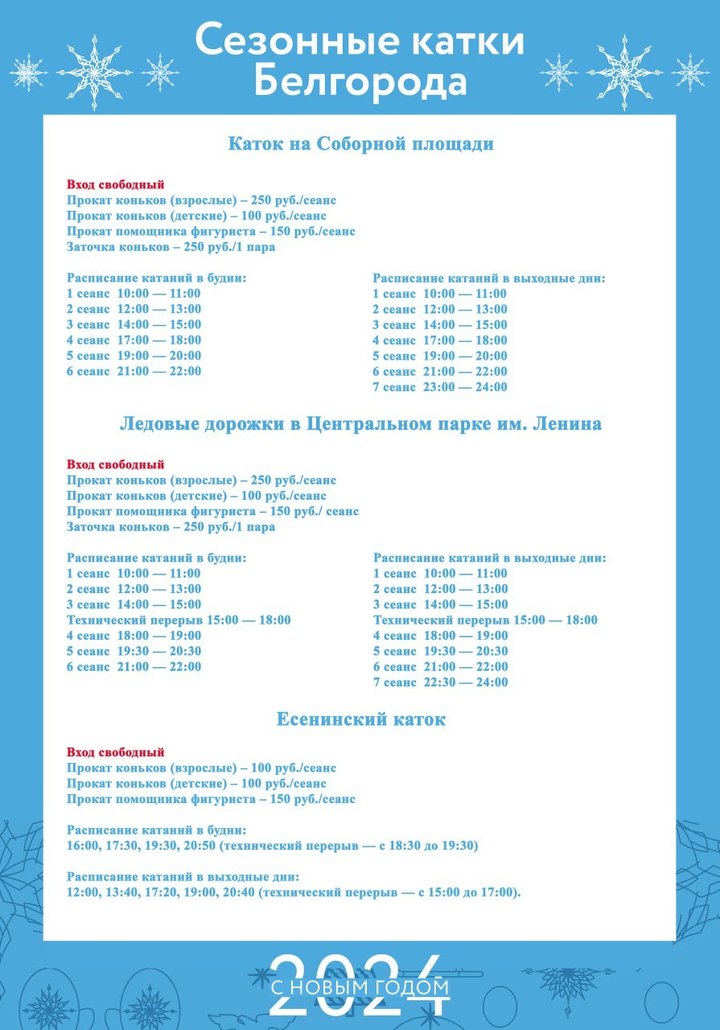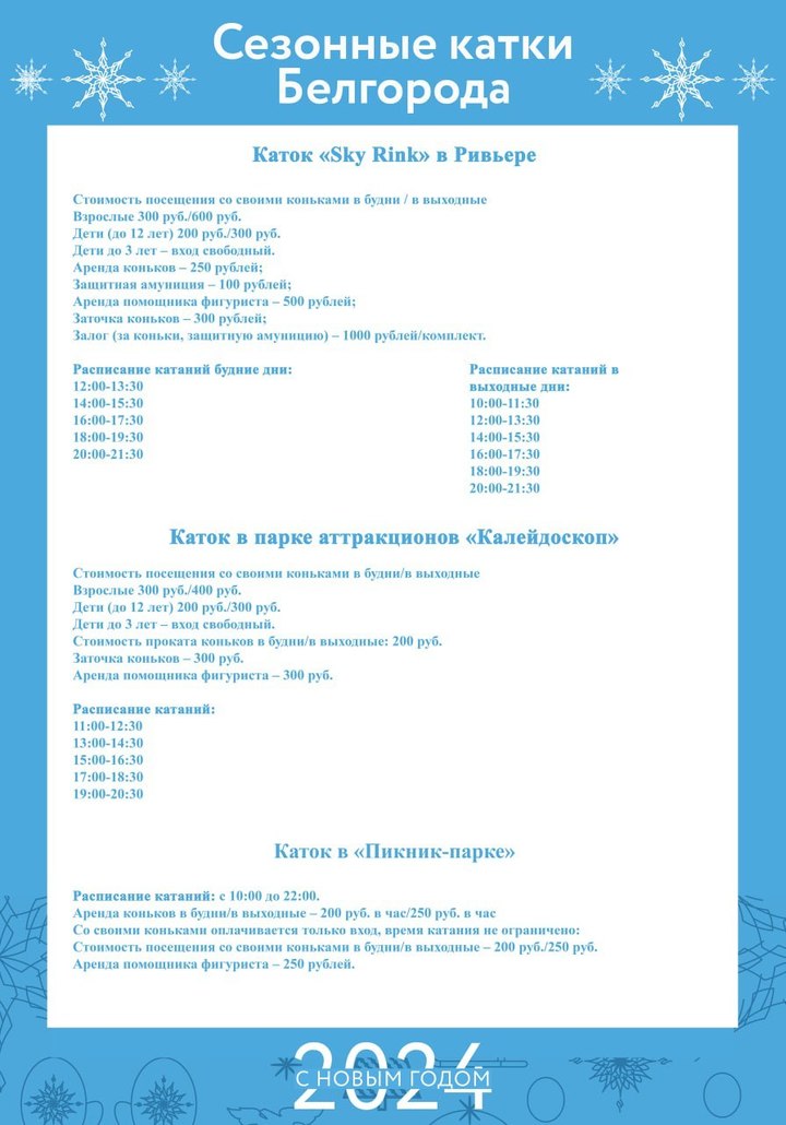 Жителям облцентра представили расписание работы катков Белгорода
