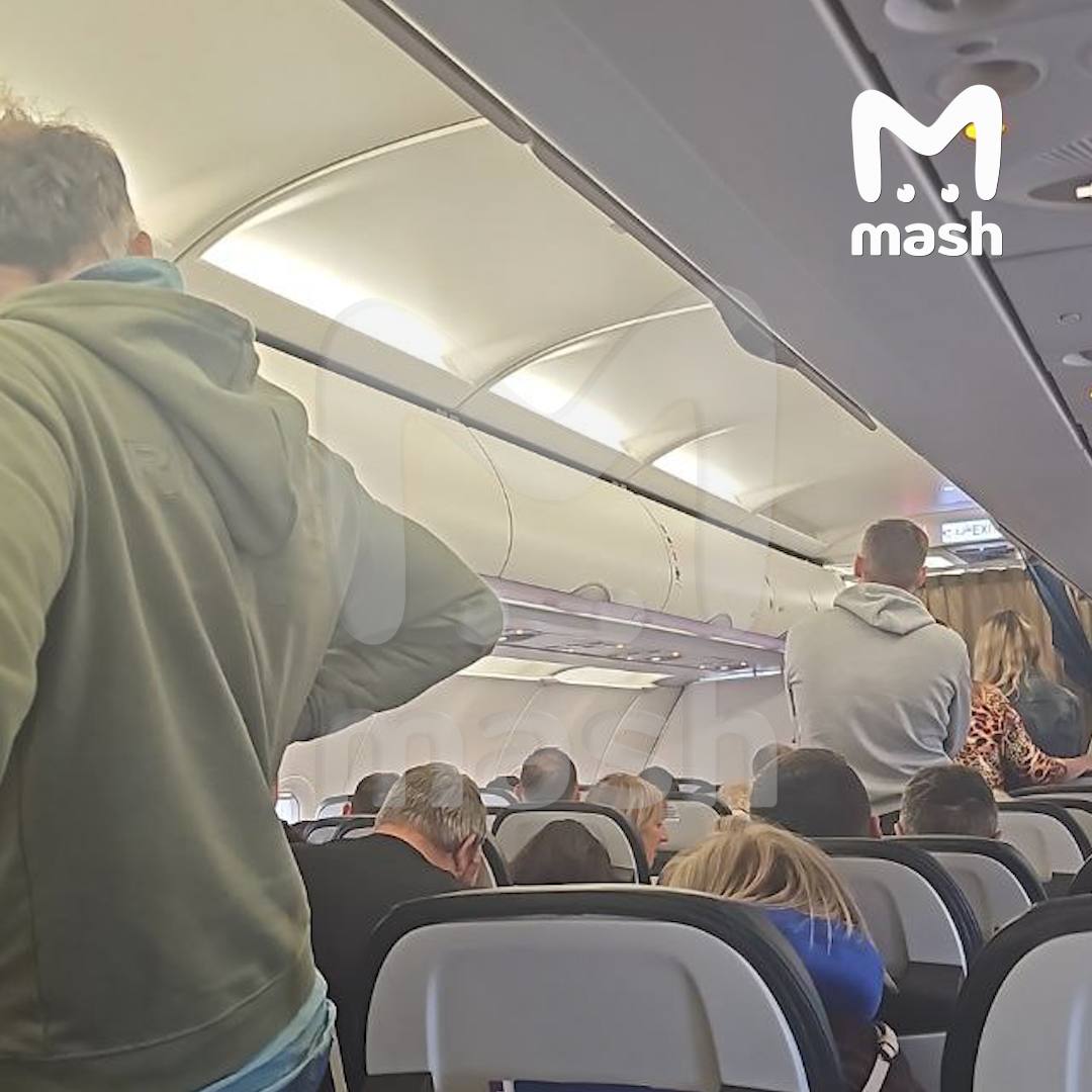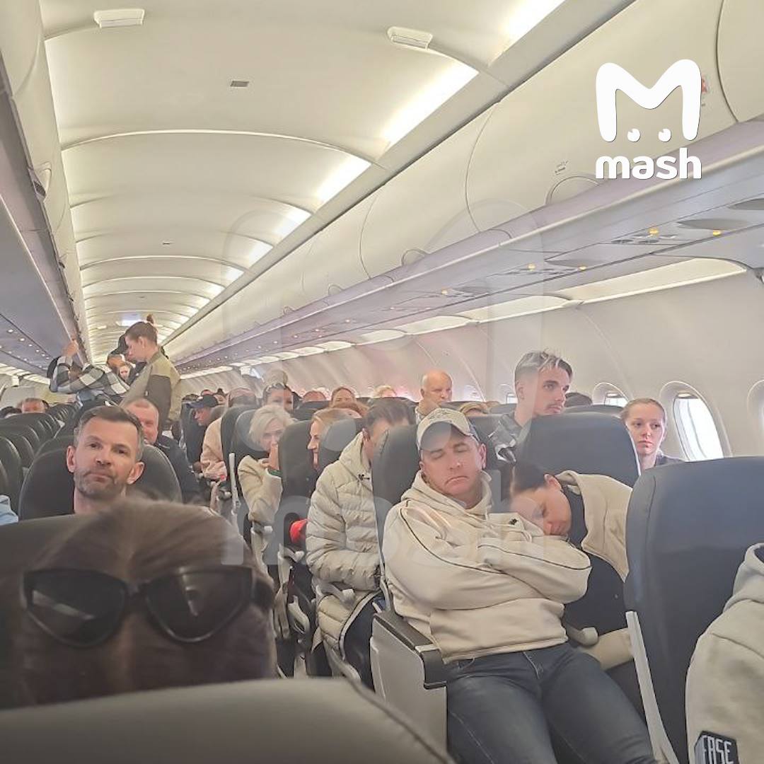 Фото прислала подписчица, говорит — уже больше 10 часов ждут разрешения на взлёт. Еда закончилась, вода на исходе, в туалет не пускают. Внутри 236 пассажиров, среди них есть беременные и дети.