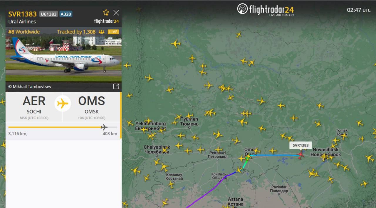 Самолет «Уральских авиалиний», летевший из Сочи в Омск, по предварительным данным, совершил экстренную посадку на грунт в сельской местности недалеко от Новосибирска. На борту находятся 170 пассажиров, среди них 23 ребенка. Информация на данный момент проверяется. Также данных о пострадавших пока нет.