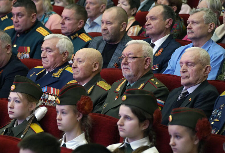 В зале собрались командиры и военнослужащие военных частей, командование 49 общевойсковой армии, представители ветеранских организаций, силовых структур, духовенства казачества, а также семьи военнослужащих, кадеты и студенты.