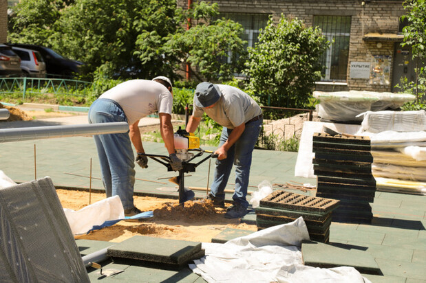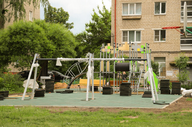 Дополнительно, в рамках региональной инициативы «Наш район», также запущенной по инициативе главы региона, во дворе устанавливается современная детская площадка. Подрядная организация уже выполнила укладку резинового покрытия и проложила пешеходные дорожки.