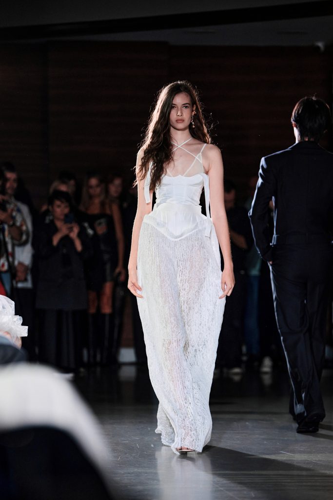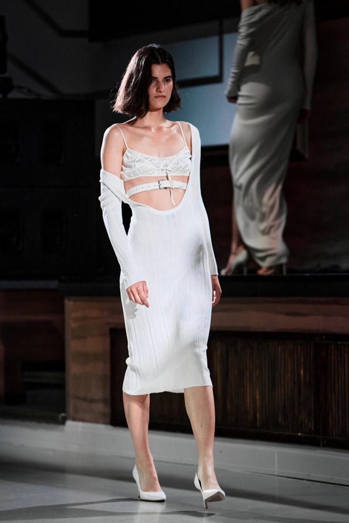 Показ мурманского бренда Gapanovich получился самым театральным. Специально для недели моды команда подготовила черно-белый мини-фильм, а вместо классического музыкального сопровождения на шоу включили сказку «Царь-девица». Кстати, сама коллекция бренда именно так и называлась. Поэтому модели буквально выплывали на подиум в фантазийных белоснежных образах, напоминающих те, что мы видели в детских сказках.
