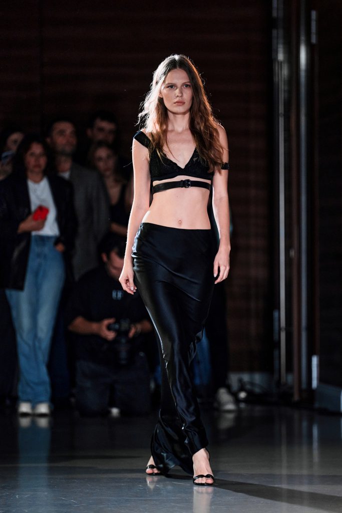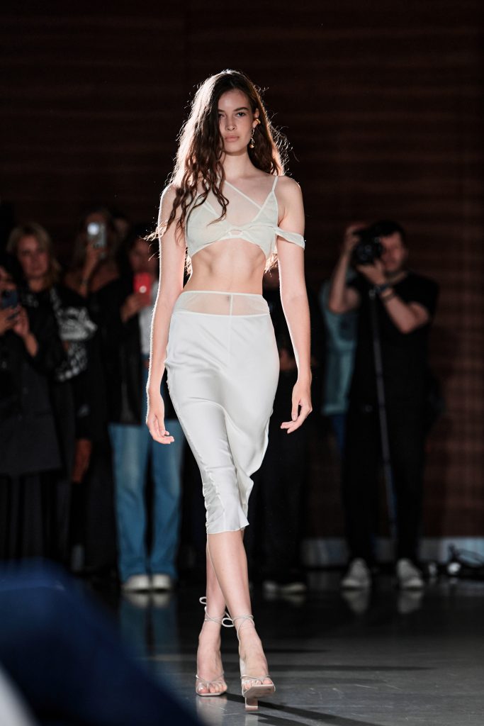 Неделю моды в Екатеринбурге открывал российский бренд Ruban. Показ, постановкой которого занимался Артем Кривда, прошел на последнем этаже Музейного комплекса в Верхней Пышме. И это было по-настоящему эффектно. Дизайнер и соосновательница бренда Алиса Рубан представила коллекцию весна-лето 2024, в которую вошли трикотажные костюмы, прозрачные юбки, трендовые замшевые куртки. Отдельное внимание автора материала привлекли аксессуары бренда и меховые вьетнамки. Однако главной темой обсуждения после показа стал макияж моделей. Сияющая кожа, мокрая укладка и влажный эффект на теле – дело рук Артема Лялькина, визажиста, который превратил моделей в нимф, только что вышедших из воды.