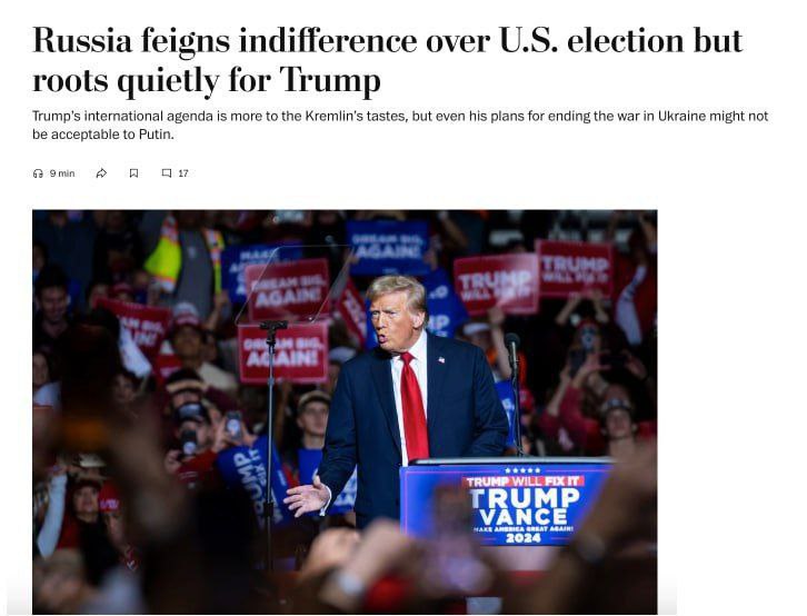 ✔️"Россия притворяется безразличной к выборам в США, но поддерживает Трампа"