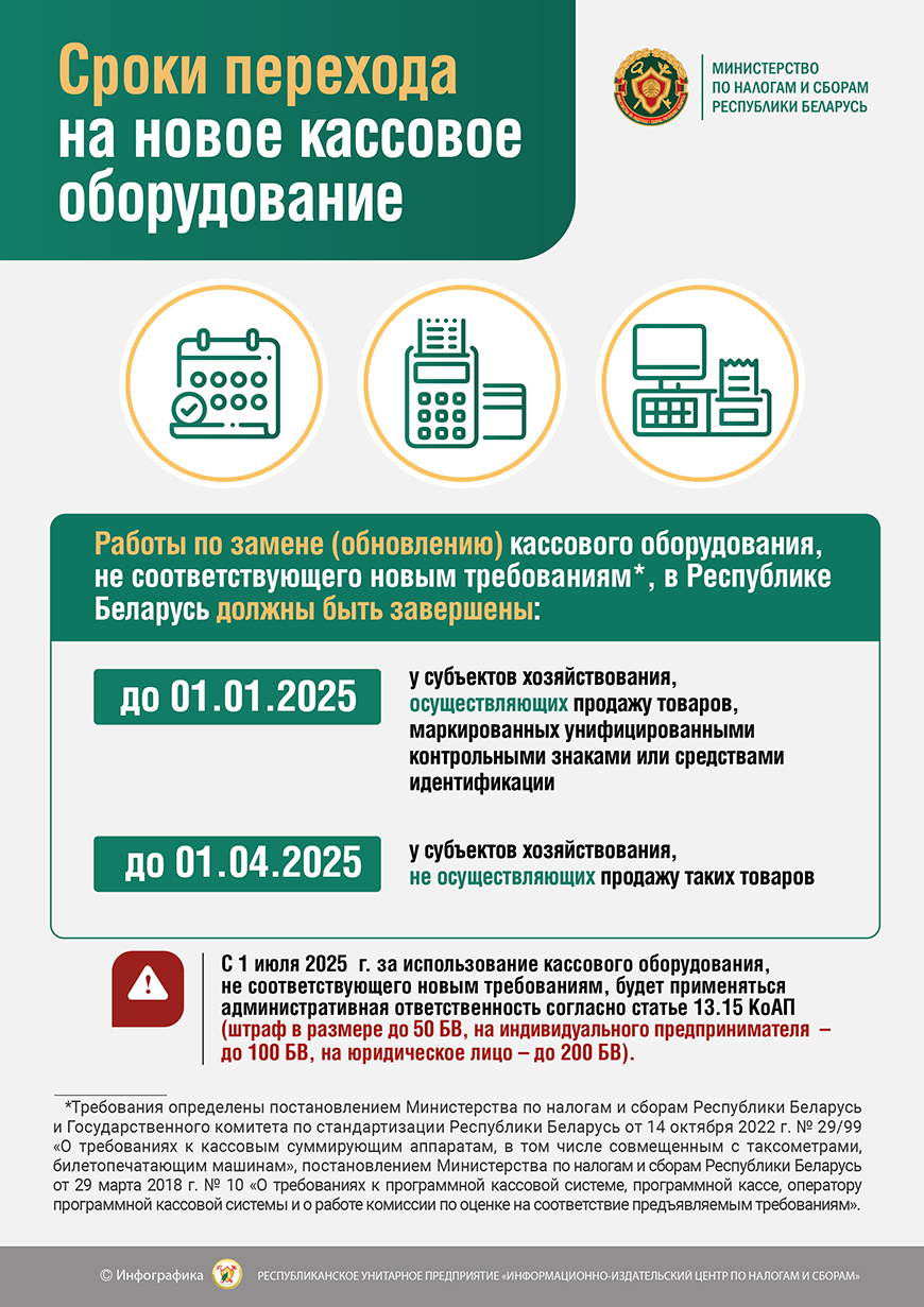 С 1 июля 2025 г. субъекты хозяйствования Беларуси обязаны использовать кассовое оборудование, которое соответствует новым требованиям*.