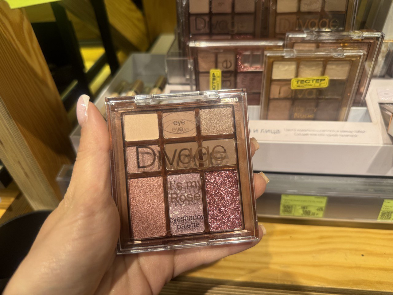 С тенями для глаз всё немного сложнее. Не всегда этот продукт от бюджетных марок позволяет сделать качественный макияж, но некоторые неплохие варианты всё-таки есть. Например, мини-палетка от Divage в розовых тонах. Она достаточно универсальна, так как в ней представлены цвета для ежедневного макияжа и крупные блестки для более праздничных случаев. В целом продукт в использовании показал себя хорошо, отлично ложится на кожу век и легко растушевывается. Стоимость палетки по скидке 359 рублей.