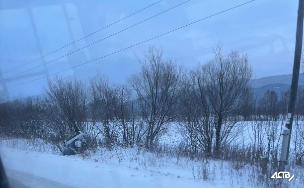 Жители Тымовского района, ехавшие утром 29 ноября по дороге Южно-Сахалинск Оха в районе села Красная Тымь, заметили на обочине перевернувшийся автомобиль.