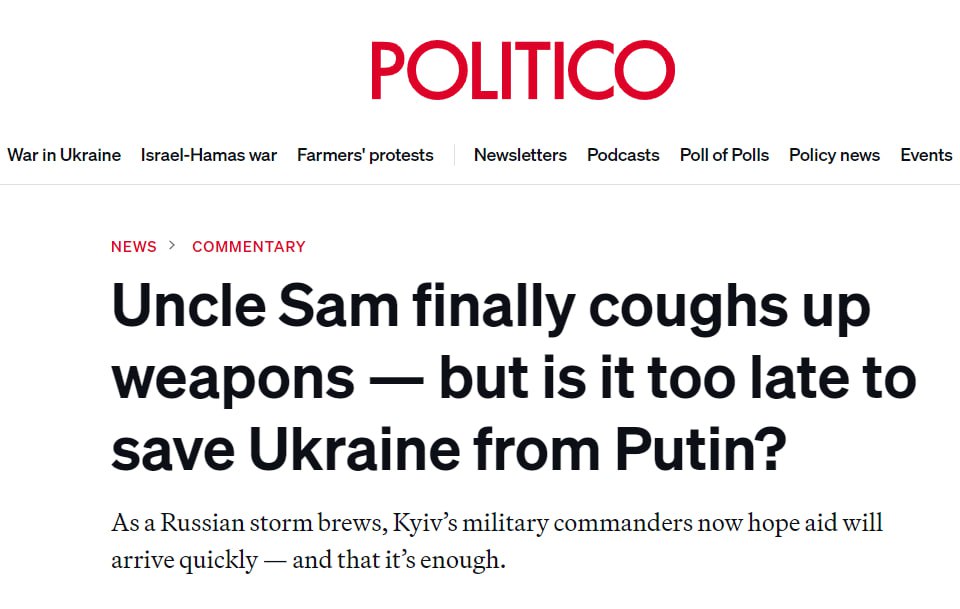 Слишком мало и поздно: американское издание Politico сообщает, что военной помощи от США не хватит ни для организации обороны, ни, тем более, для начала нового наступления ВСУ