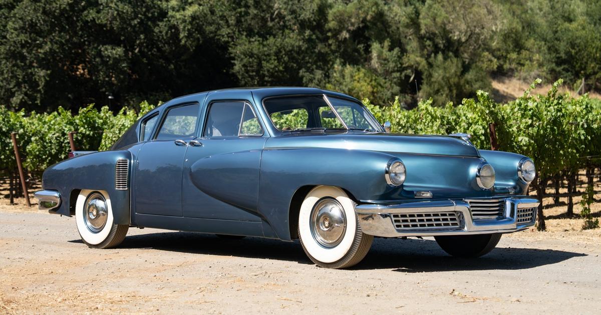 Passionné d’automobile, Preston Tucker avait commencé sa carrière chez Cadillac avant de travailler sur les chaînes de montage de Ford. On le retrouve finalement comme commercial puis directeur régional de Pierce-Arrow. C’est en se liant d’amitié avec l’ingénieur et concepteur de voitures de course Harry Miller qu’il commence à construire des voitures de course pour Ford, en 1935. L’idée de construire sa propre voiture germe durant la Seconde guerre mondiale. Il s’inspire largement du concept révolutionnaire de la Tatra T77 à l’architecture à moteur arrière conçu par Miller. Il s’agissait d’un six-cylindres avec des chambres hémisphériques et des soupapes en tête. La ligne devait porter la signature de Alex Tremulis qui venait d’Auburn et de Cord. Le moteur Miller ne répondant finalement pas aux critères de Tucker, la berline américaine devait finalement accueillir un bloc provenant de la société Air Cooled Motors spécialisée dans les moteurs d’hélicoptère. Originalité de la production américaine, la Tucker 48 est estimée entre 1,5 et 2 millions de dollars. Le prix de l’exclusivité pour ce modèle qui appartient à l’une des légendes du cinéma américain.