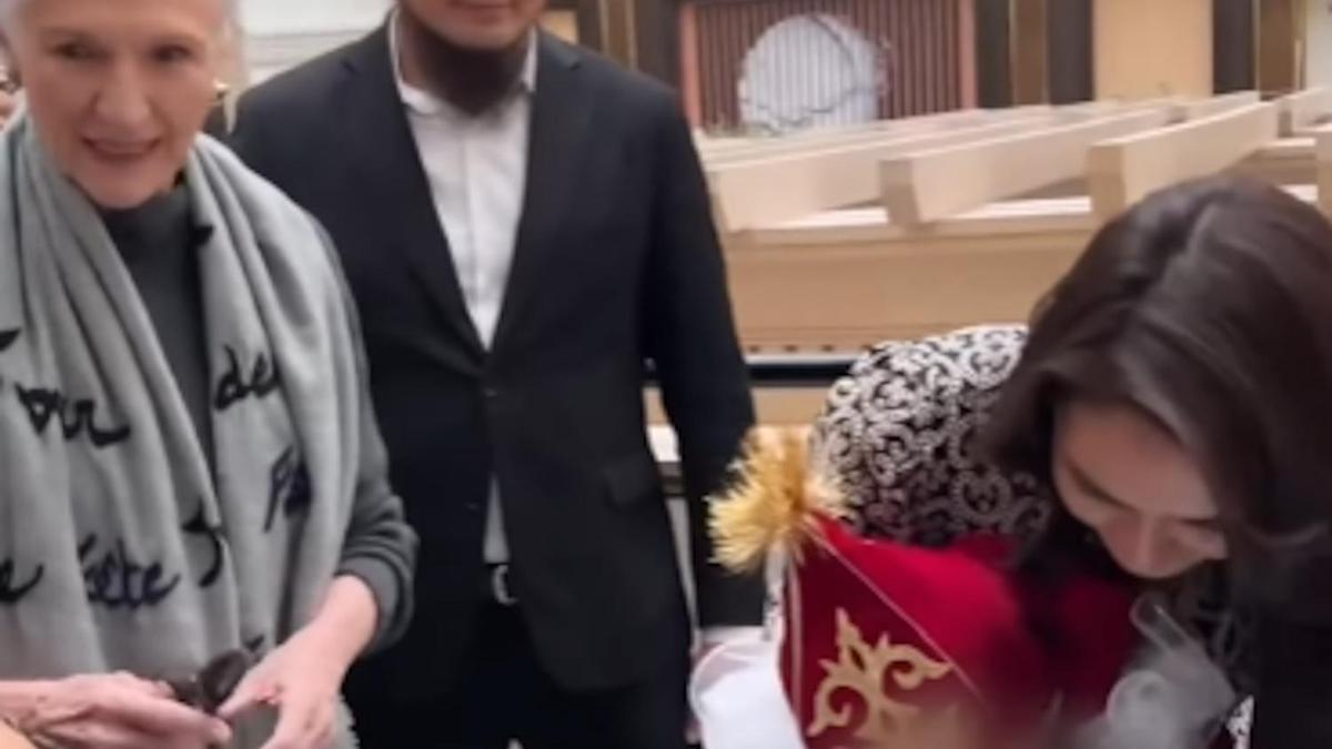 "У них потрясающая, красивая девочка - я взяла ее за руку, мы с ней прошлись… она совсем не стеснялась. Я подумала, что это красивая, потрясающая традиция", - отметила Мэй.