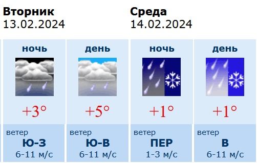 Ночью в среду, 14 февраля, будет +1°. Такая же температура сохранится и днём.