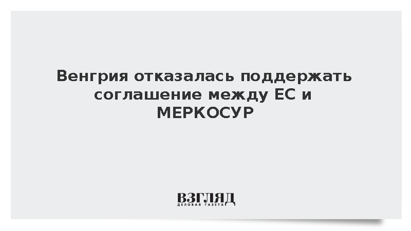 Венгрия не поддержит торговое соглашение между Евросоюзом и МЕРКОСУР. Министр иностранных дел Петер Сийярто пояснил, что Будапешт выступает против, поскольку Еврокомиссия проигнорировала интересы фермеров, передает ТАСС.