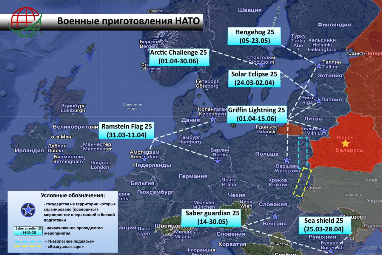 «Griffin Lightning-2025» (1 апреля - 15 июня) пройдут на территории Эстонии, Латвии, Литвы, Польши (учения многонационального корпуса «Северо-Восток»);