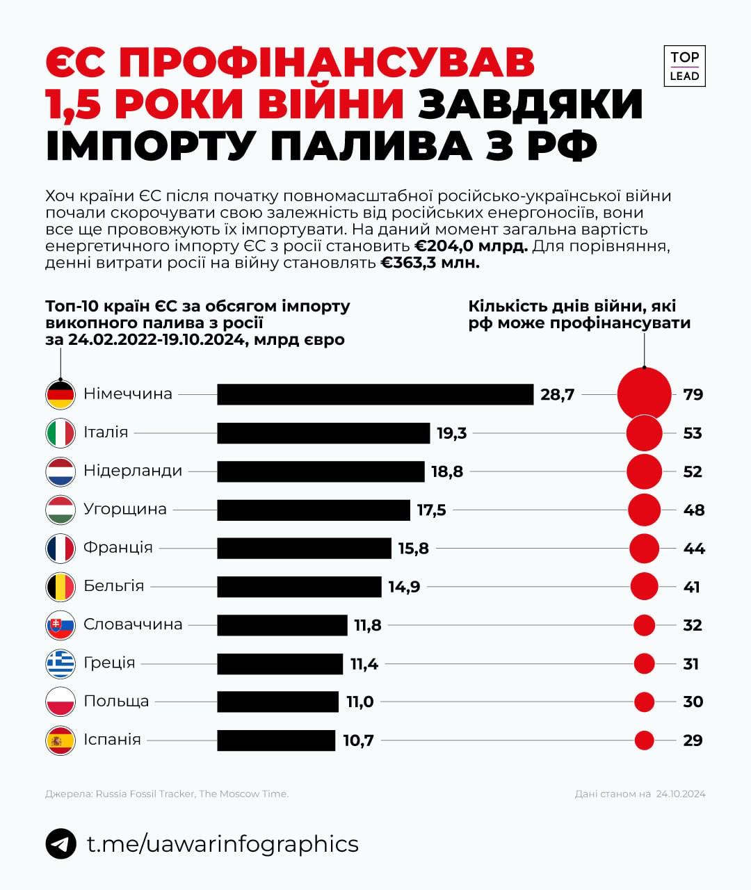 Страны ЕС профинансировали России 1,5 года войны против Украины