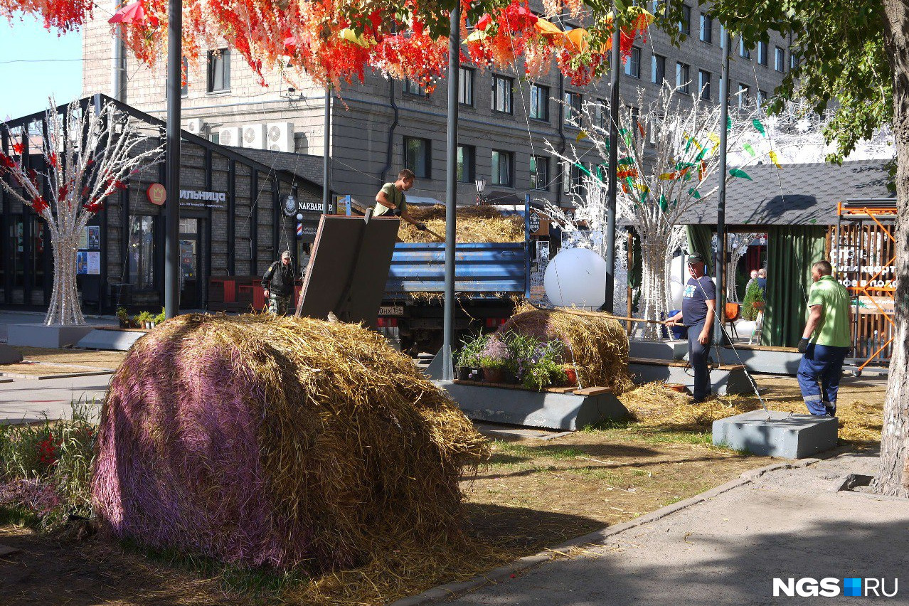 В выходные 22–23 июля фестиваль цветов на Ленина закончит свою работу. На улице уже начали убирать сено.