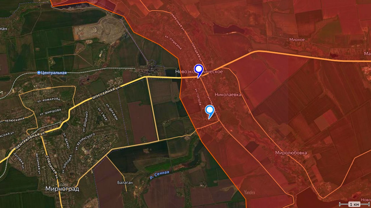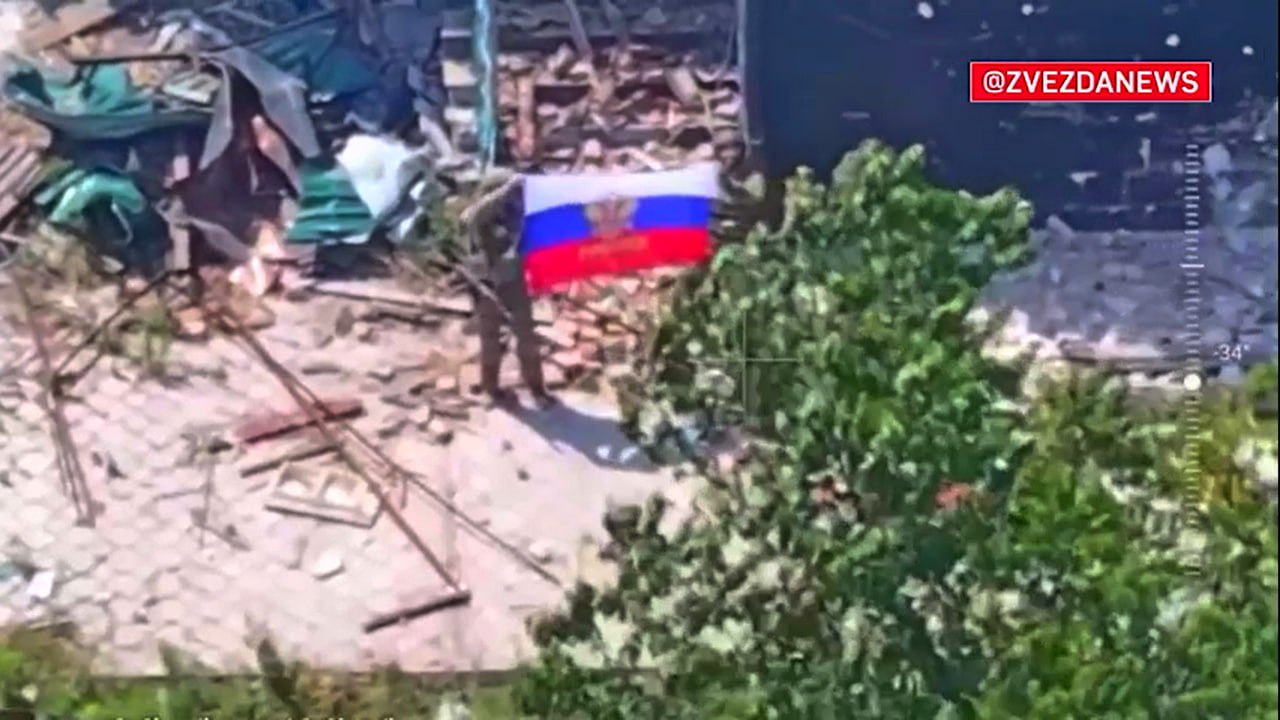 Кадры освобождения населённого пункта Новоэкономическое с демонстрацией флагов военнослужащими из 51-й ОА в составе ГрВ "Центр" российской армии показал телеканал "Звезда".