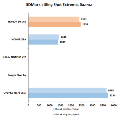 По производительности MediaTek Dimensity 6020 – платформа не выдающаяся, но и не провальная. Да, в ценовом диапазоне, на который метит HONOR 90 Lite, уже встречаются решения намного мощнее вроде первого Google Tensor на Pixel 6a или Mediatek Dimensity более высокого уровня, как у Infinix NOTE 30 VIP, но я не назову «лайт» однозначно отстающим. Иных конкурентов или, к примеру, близкий по статусу HONOR X9a он как раз превосходит. Как минимум интерфейс работает гладко, система позволяет запустить любые игры. Но рассчитывать на мгновенный старт любых приложений и гарантированную высокую кадровую частоту в ресурсоемких играх не стоит.