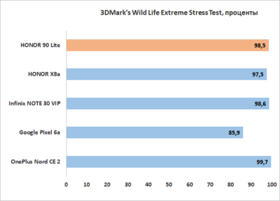А вот троттлинга просто нет – смартфон вообще не греется под нагрузкой, а платформа никак не сигнализирует о долгой нагрузке. Ресурсные тесты не фиксируют понижения тактовой частоты.
