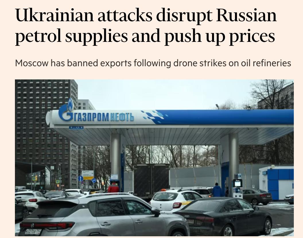 По данным FT, ситуацию усугубляют удары украинских беспилотников по нефтеперерабатывающим заводам, в результате которых, по оценке аналитика «Финама» Сергея Кауфмана, из строя выведено не менее 10% перерабатывающих мощностей. Украинские атаки по железнодорожной инфраструктуре в центральной России вызвали задержки грузовых перевозок топлива.