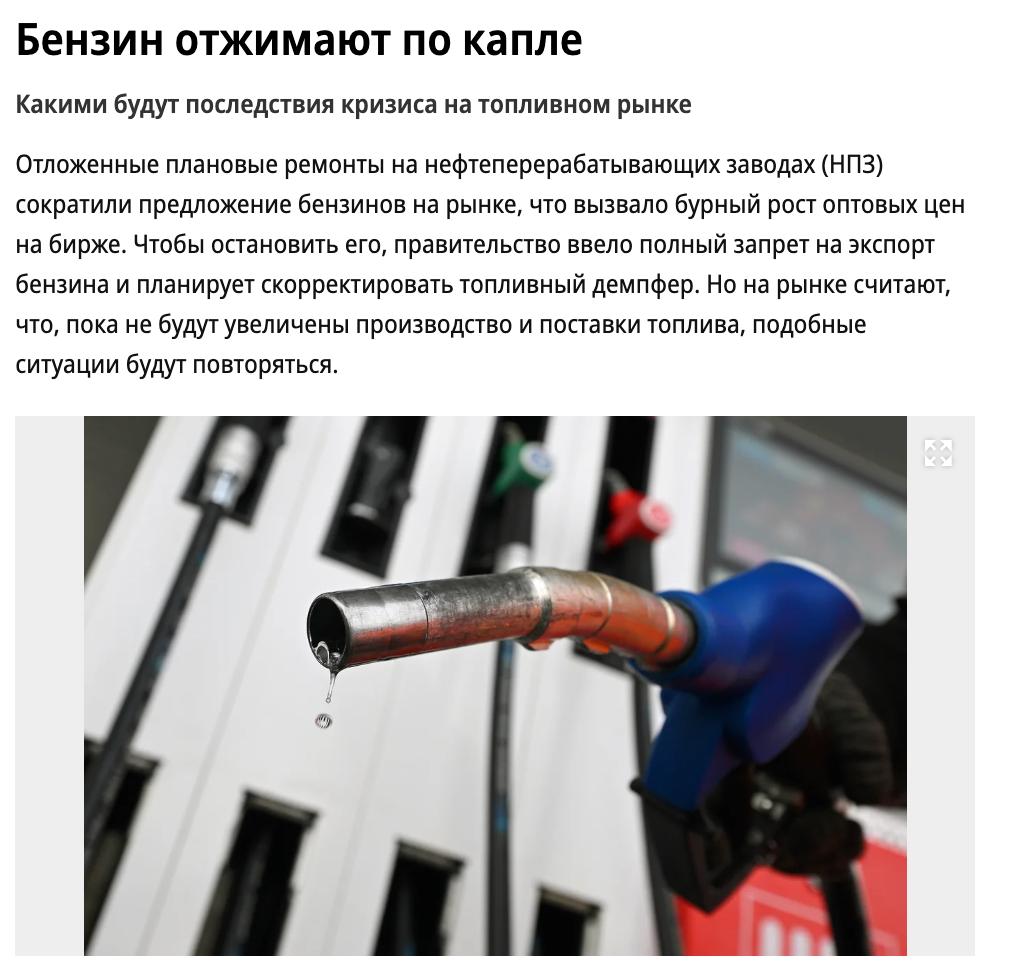 28 июля власти РФ полностью запретили экспорт бензина, однако это не стабилизировало рынок.