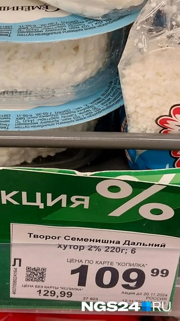 «Сибиржинка» обезжиренный, 500 граммов — базовая цена выросла на 20 рублей, акционная цена выросла на 60 рублей.