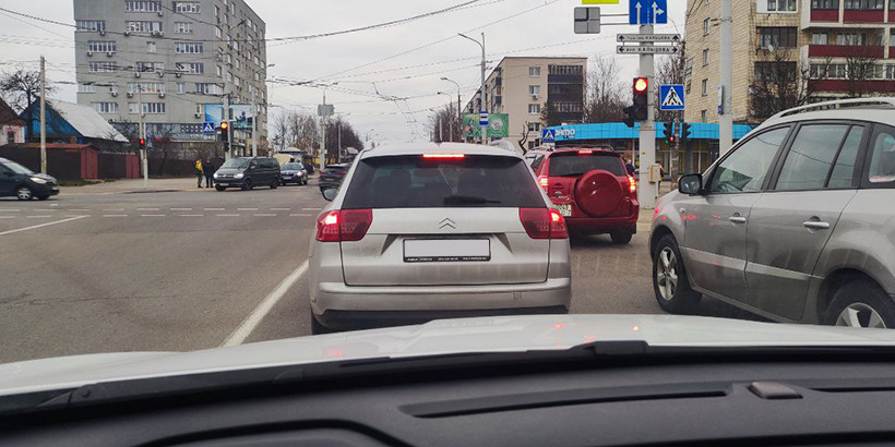 По сути, Citroen даже не останавливался, а вот японскому автомобилю пришлось пропустить не только пешеходов, но и торопливого водителя. Читатель после этого прислал нам фотографию, демонстрирующую уже знакомый универсал, остановившийся перед светофором на ближайшем регулируемом перекрестке. Стоило ли спешить?