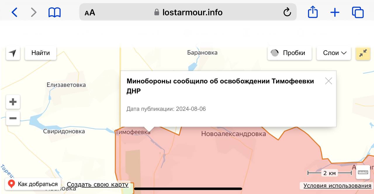 Армия России освободила населенный пункт Тимофеевка к востоку от Красноармейского (Покровска) в ДНР.