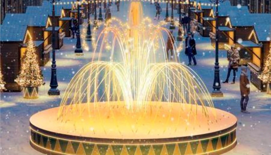 На улице установят объёмную световую композицию "Мультимедийный фонтан" высотой 3,5 метра и деревянные торговые павильоны. Ещё на улице появятся новогодние украшения.