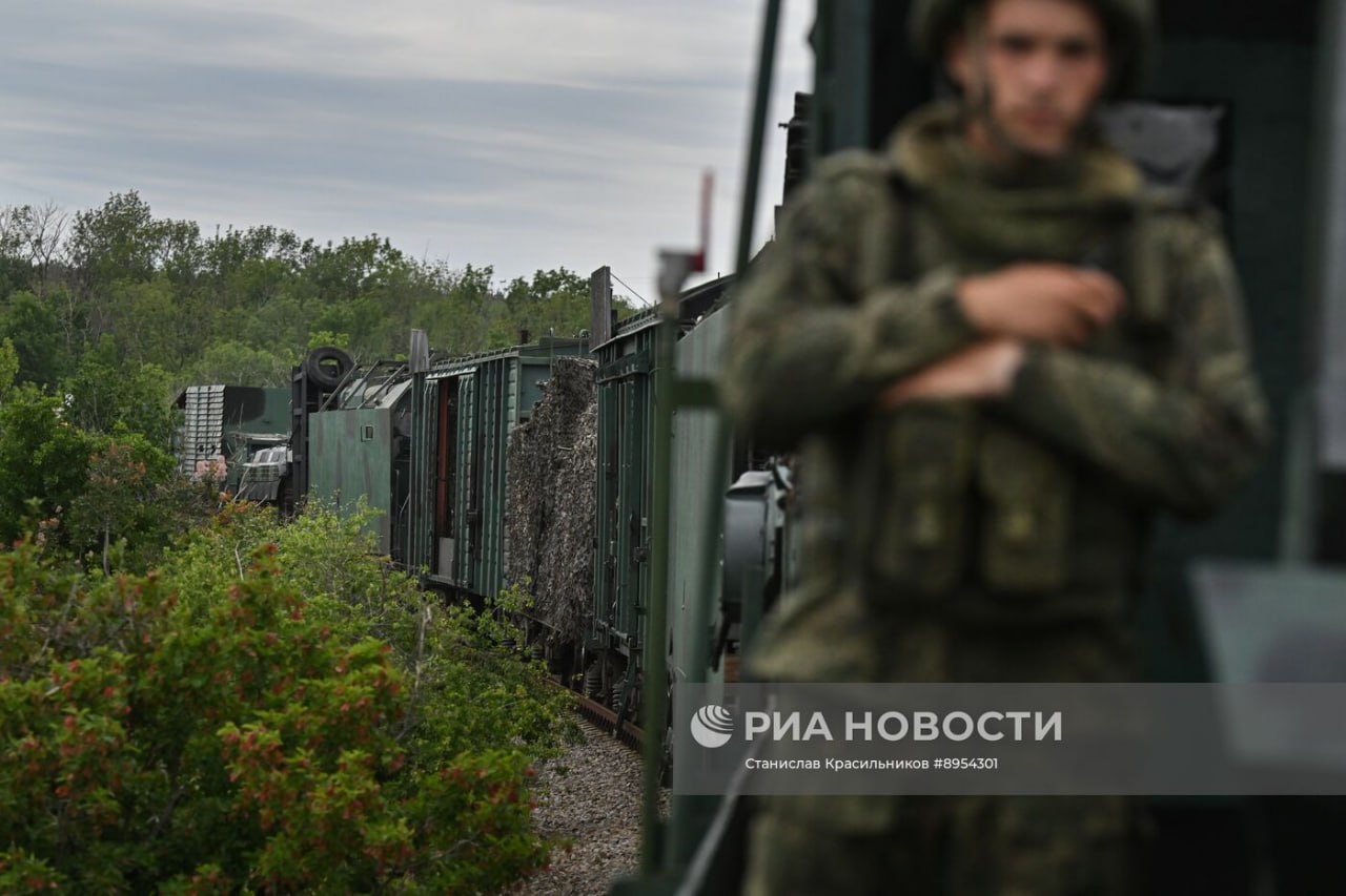 Бронепоезд «Енисей» группировки войск «Центр» во время боевого слаживания.